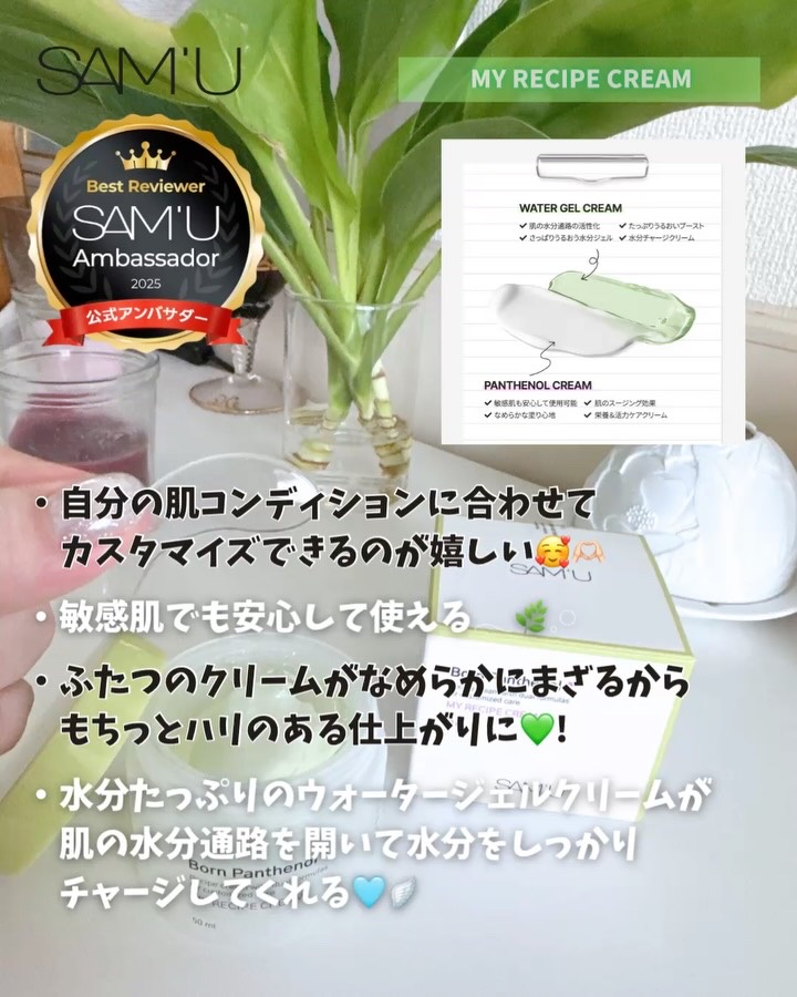 _SAM'UBORNPANTHENOLPEELTONERサミュボーンパンテノールピールトナー180ml/¥2,970(Qoo10公式より)BORNPANTHENOLMYRECIPECREAMボーンパンテノールマイレシピクリーム50ml/¥3,...