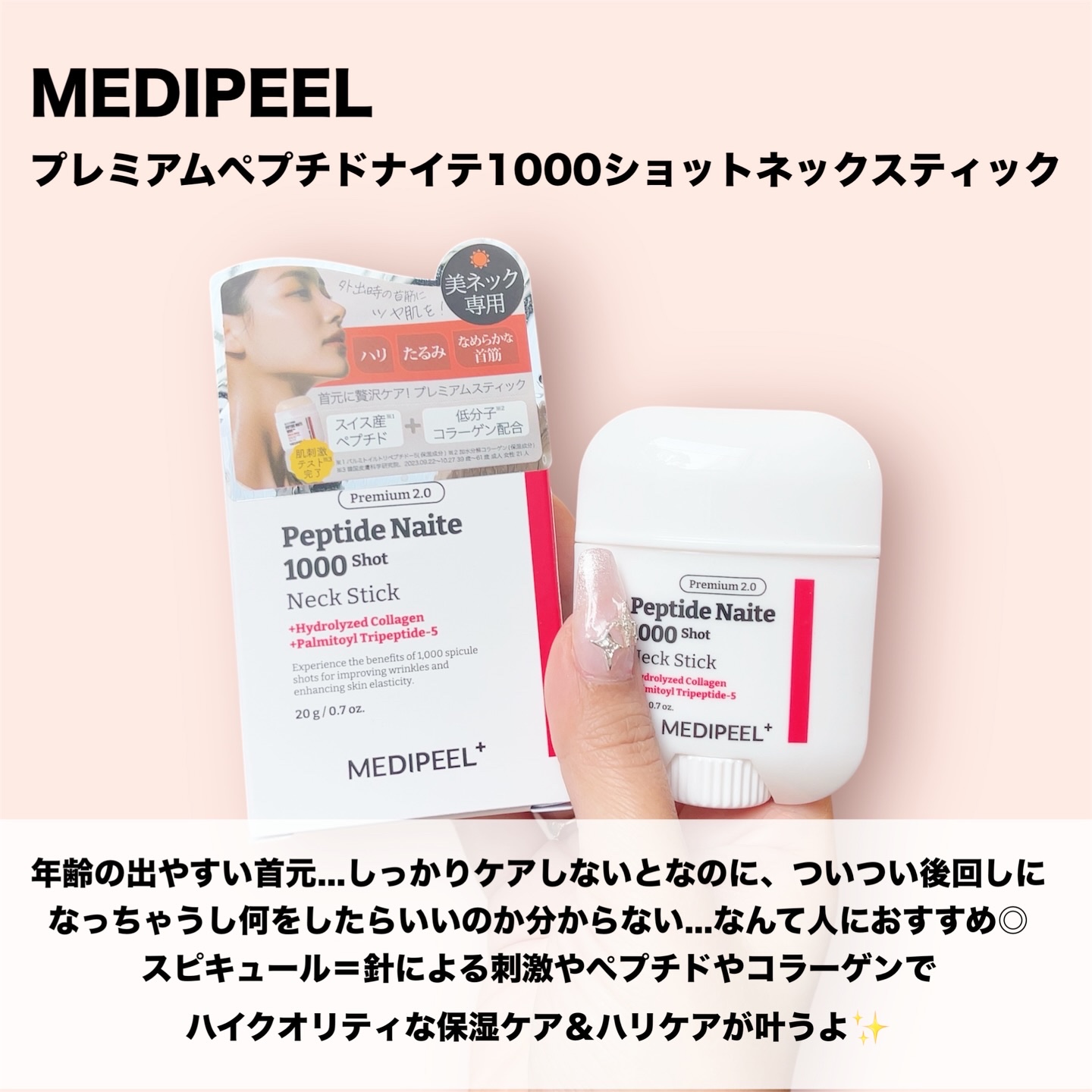 \✨意外と見られてる首元✨/୨୧୨୧MEDIPEEL(メディピール)プレミアムペプチドナイテ1000ショットネックスティック୨୧୨୧年齢が出やすい首のシワ、アラフォーになってから気になるようになりました🥲スティックタイプの手軽に使えるネックケ...