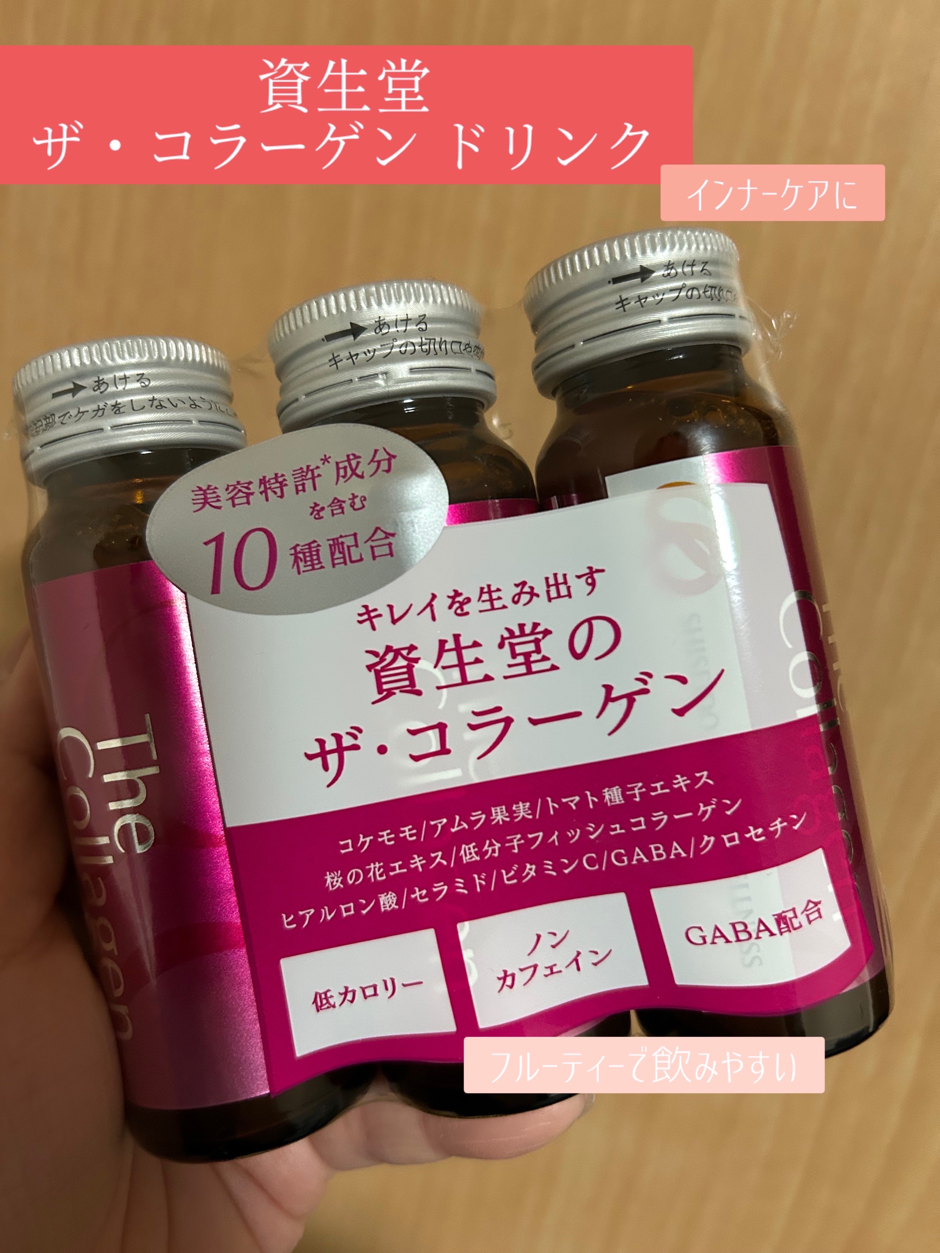 - 10種の美容成分を厳選配合。美を生み出し続けるサイクルに着目した資生堂の独自設計。スーパー果実由来の美容特許成分(コケモモ+アムラ果実)に加え、トマト種子エキス、桜の花エキス、GABA、クロセチン、低分子コラーゲン、ヒアルロン酸、セラミド、ビタミンCを配合。 美容特許成分配合 特許第4917180号:コケモモとアムラ果実など配合成分の組み合わせによる美容についての特許 低カロリー・ノンカフェイン・脂質ゼロ ミックスフルーツ風味 <こんなかたに> ●ハリのある毎日を過ごしたいかた ●いつまでも美しくいたいかた ●気軽に、積極的にコラーゲンを摂取したいかた ●美容意識の高いかた