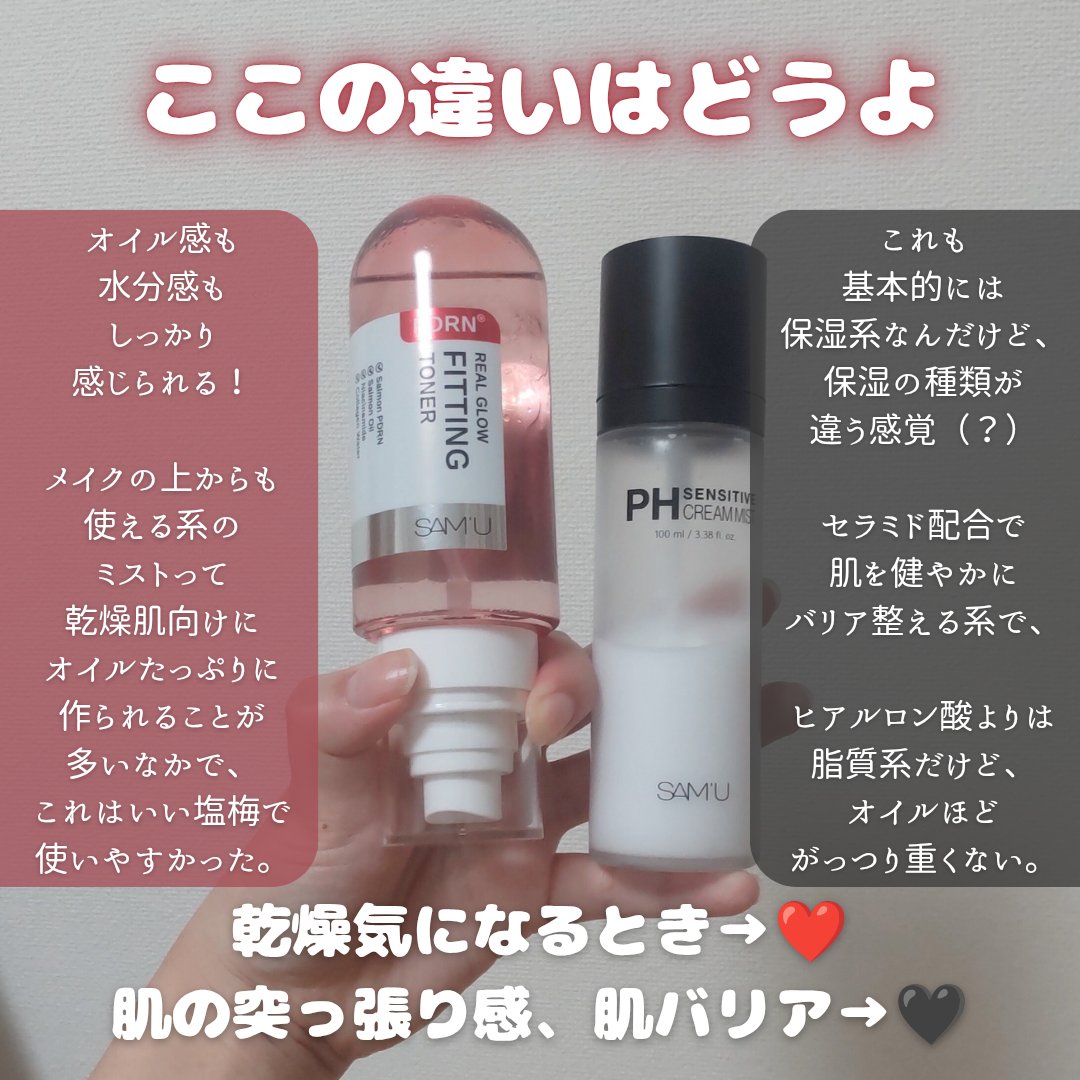 スキンケアの最初にミスト仕込むの好きなんだけど、最近サミュのフィッティングトナー使ってる微細なミストが、ふわっと肌にのる感じがめちゃくちゃ好みオイルインで、しっとりなじむのが◎#samu#サミュ#商品提供#pdrn#乾燥シーズンの肌管理...