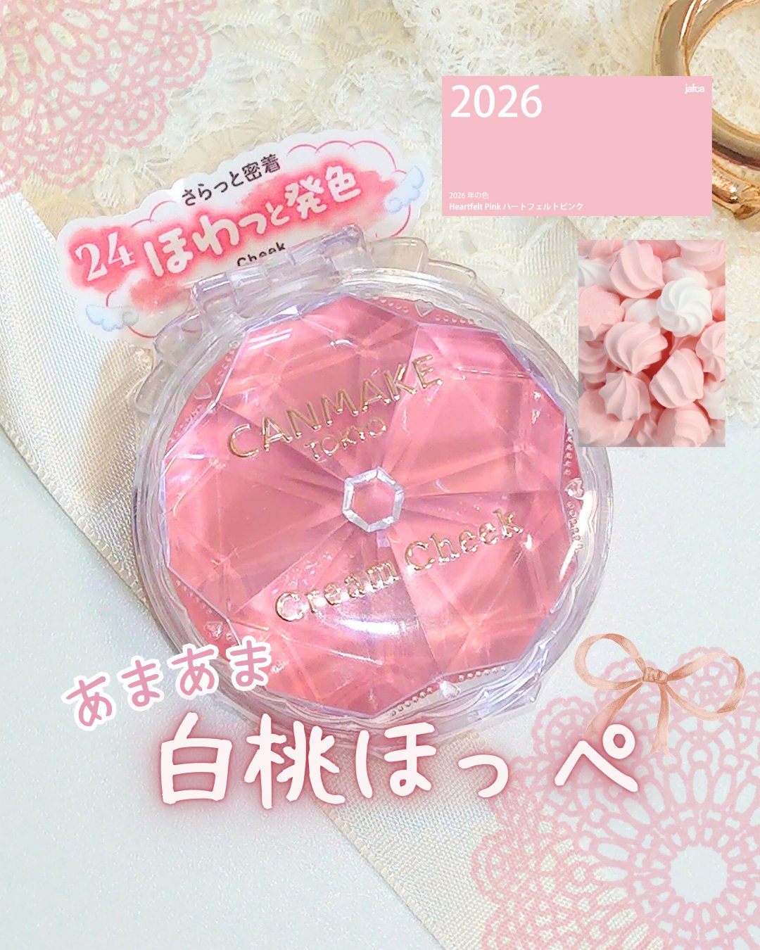 キャンメイククリームチーク24ピーチムース☑︎2025年12月下旬〜先行発売中☑︎¥638溶け込むような肌馴染みと血色感を演出する仕上がりのクリームチーク。白みピンクで赤くなり過ぎないのが◯とっても使いやすいのでチェックしてみて♡#キャンメイ...