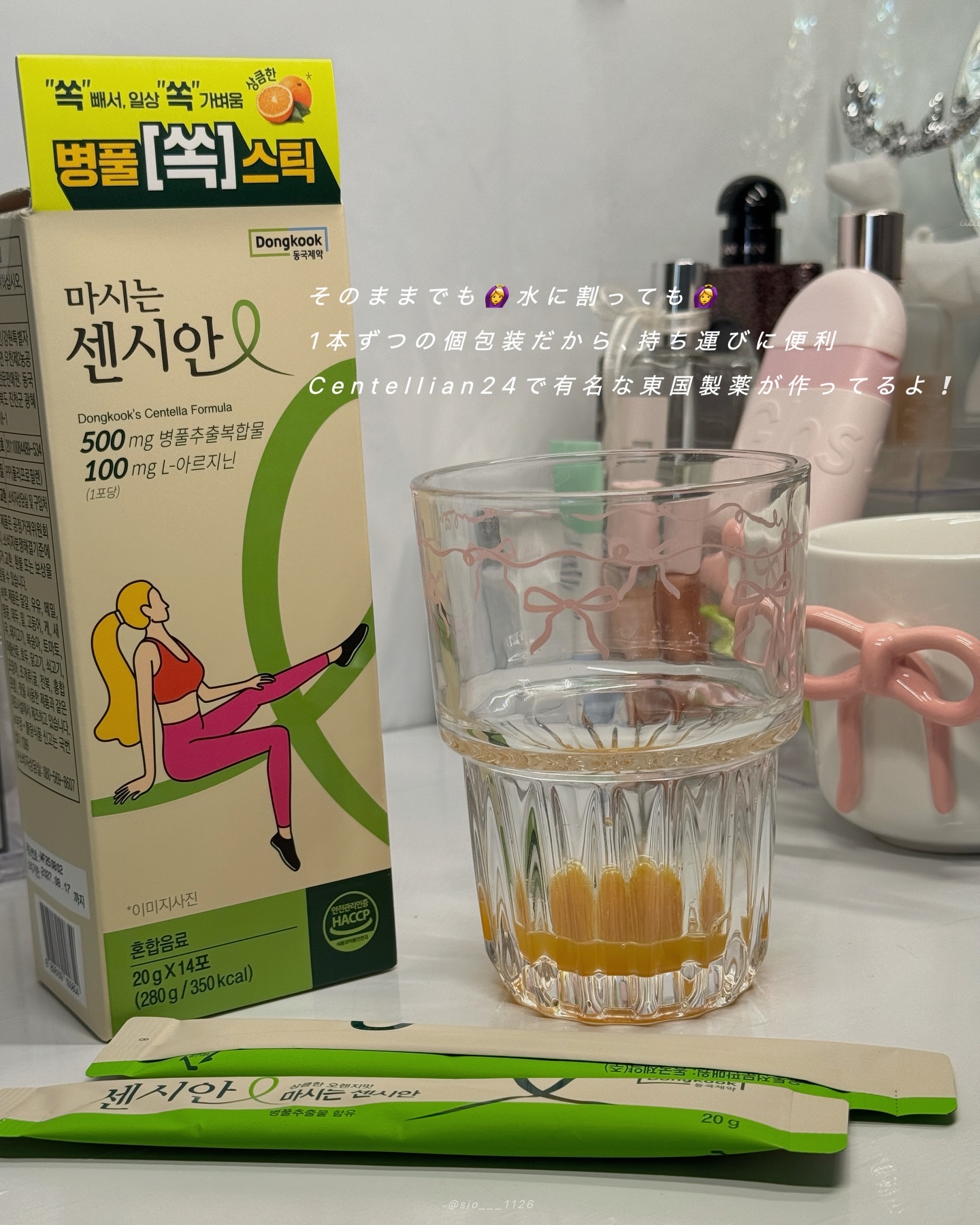 - 東国製薬55年の歴史がこもったプレミアムツボクサエキスとL-アルギニンなどの原料が配合され、生き生きとした毎日のサポートとインナービューティーに役立ちます。1包(20g)あたり25kcalのさわやかなオレンジ味の液状スティックタイプなので手軽でおいしくケアできます。