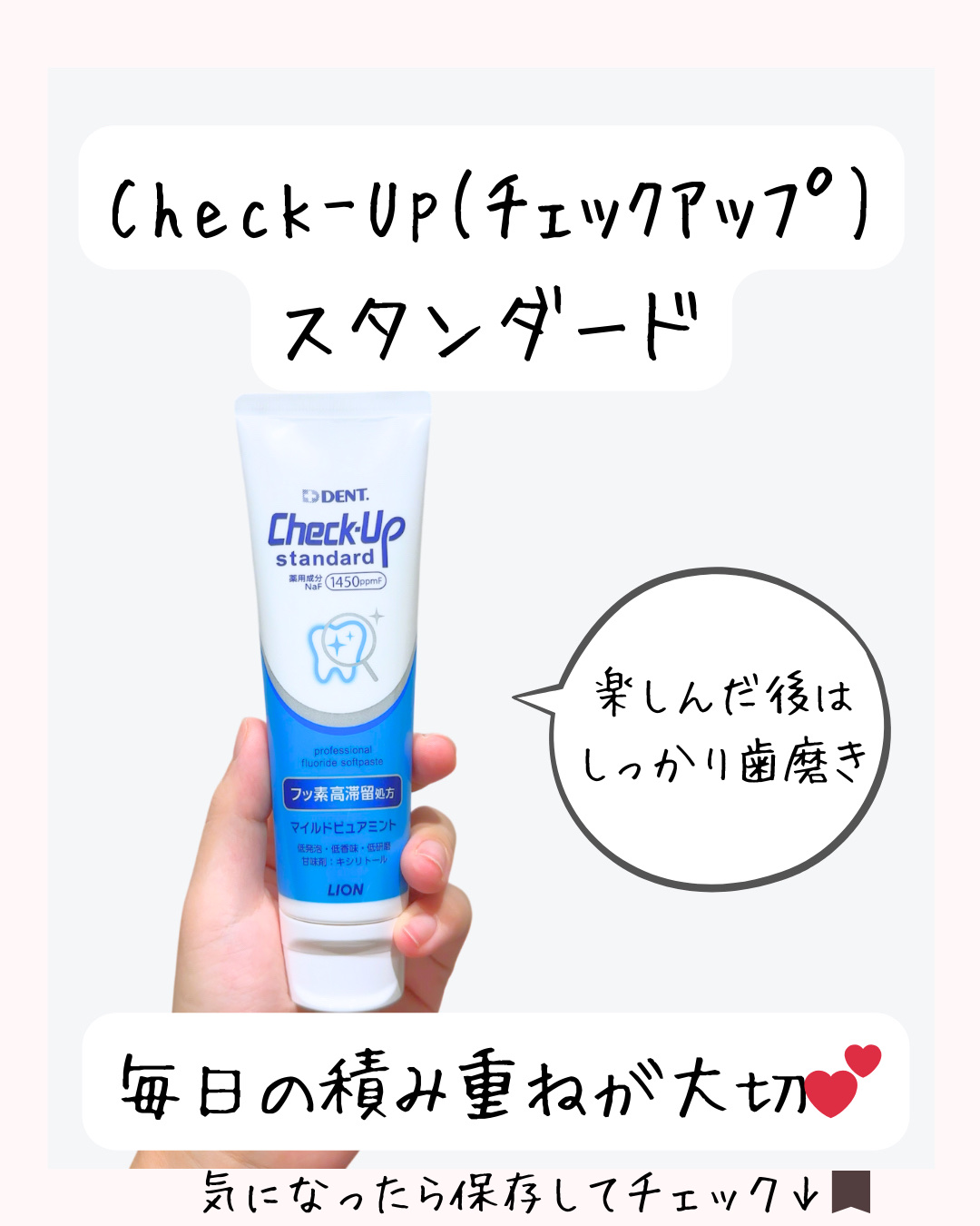 むし歯予防の大定番ライオンライオン歯科用DENTCheck-upstandard135gむし歯予防ならコレ!高濃度フッ素配合(1450ppm)ソフトペースト低研磨性、低香味、低発泡剤。青パケが有名だけど、この緑パケの方が個人的には好き。味がマ...