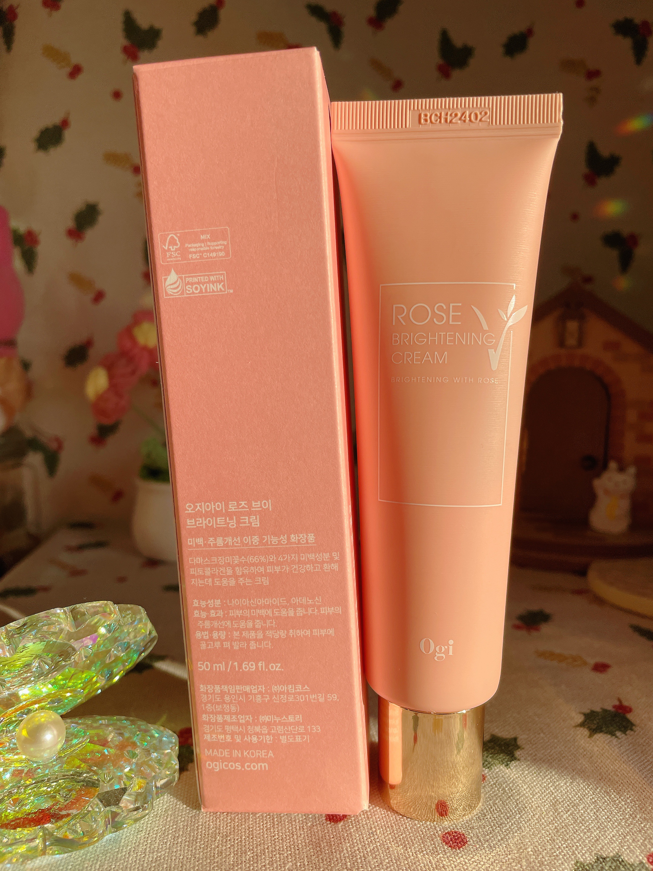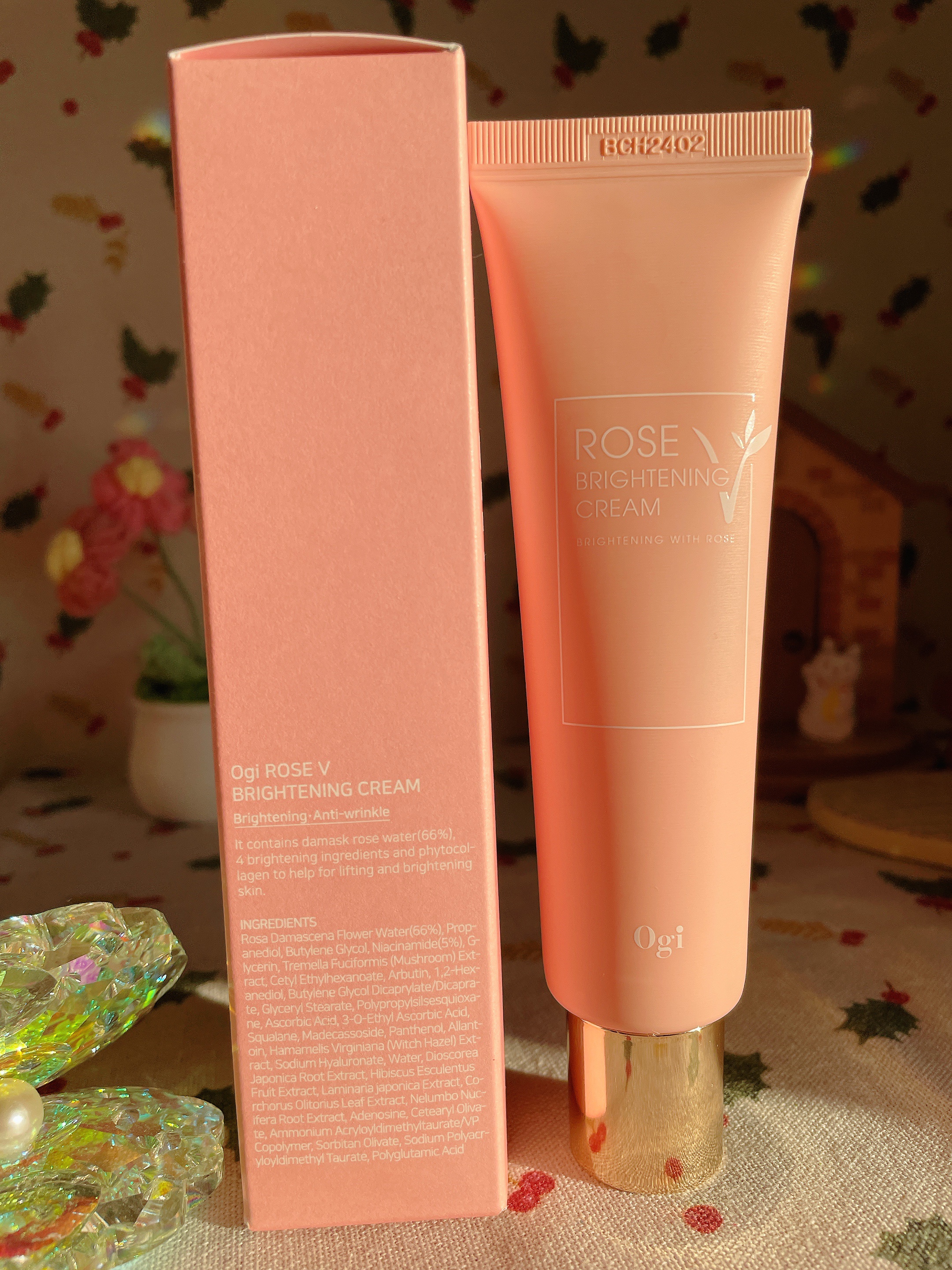qoo10購入品ビニール肌おもち割コラボ3500円OgiカメリアリフティングカプセルアンプルローズVブライトニングクリーム➕洗顔フォームクリームはほんのりローズの香り。朝化粧前に使用してもよれずに、するする保湿してくれるので朝にぴったり。アン...