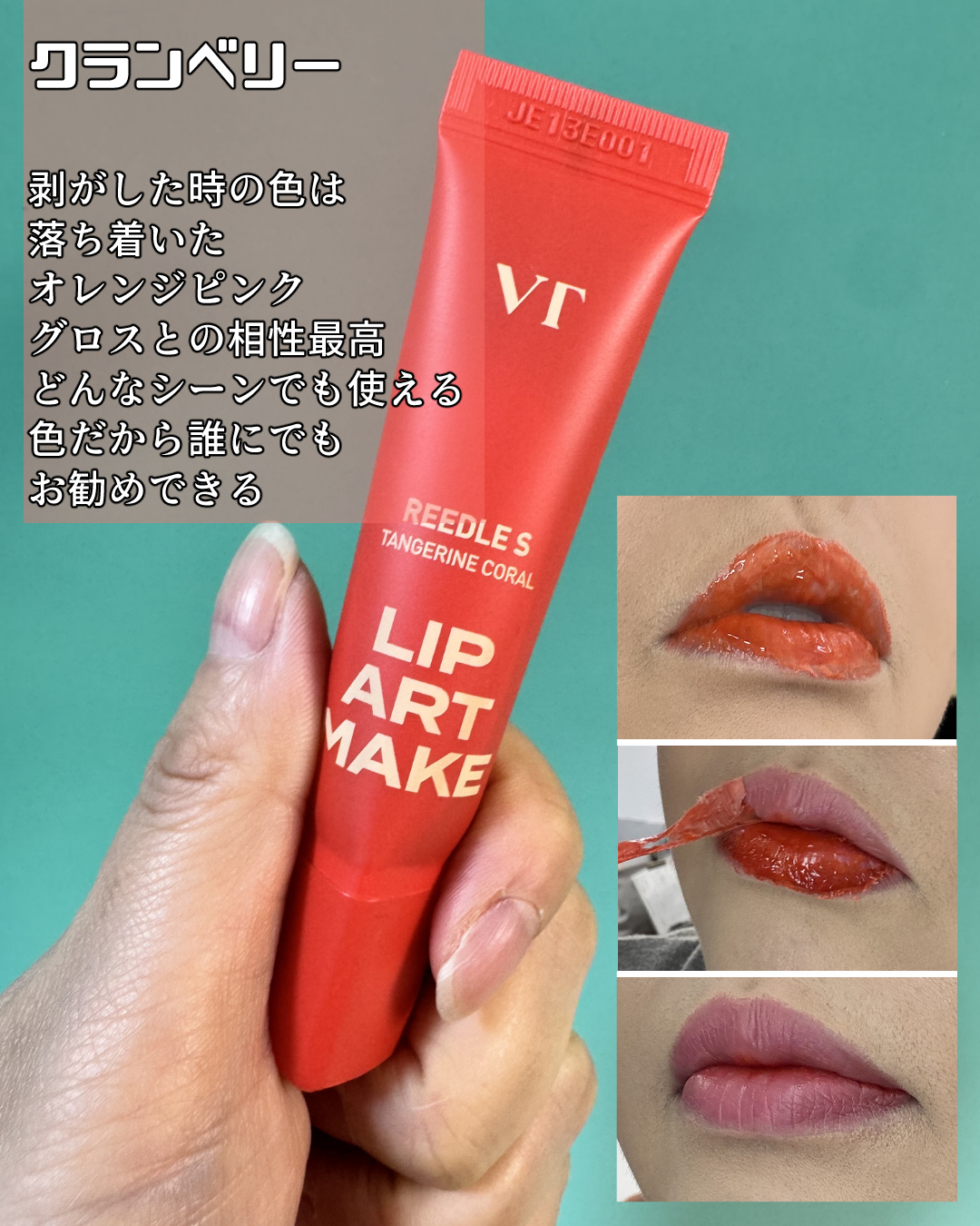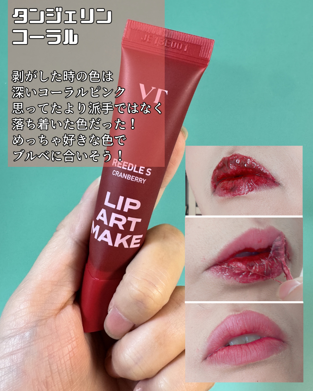 - 塗ってはがすだけで生き生きした印象のリップを演出!ピールオフリップアートメイク 食事や飲み会でも鮮やかに発色! CICA REEDLE®*1とセラミド成分*2が乾いたリップに保湿ケア ・澄んだオレンジ色コーラル:オレンジコーラルが唇にジューシーに密着して華やかで生き生きとした印象に演出 ・ふんわりやさしいローズピンク:ピンクを一滴プラスしたローズ色が唇に自然に密着して落ち着いて品のある雰囲気を演出 使い方 1.唇の油分を取り除きます。 2.リップアートメイクを唇の輪郭に合わせて塗ります。 3. 5-10分間しっかり乾燥させます。 4.唇の端っこからゆっくりはがします。 *1 ツボクサエキス(整肌)、シリカ(スクラブ) *2 セラミドNP(保湿)