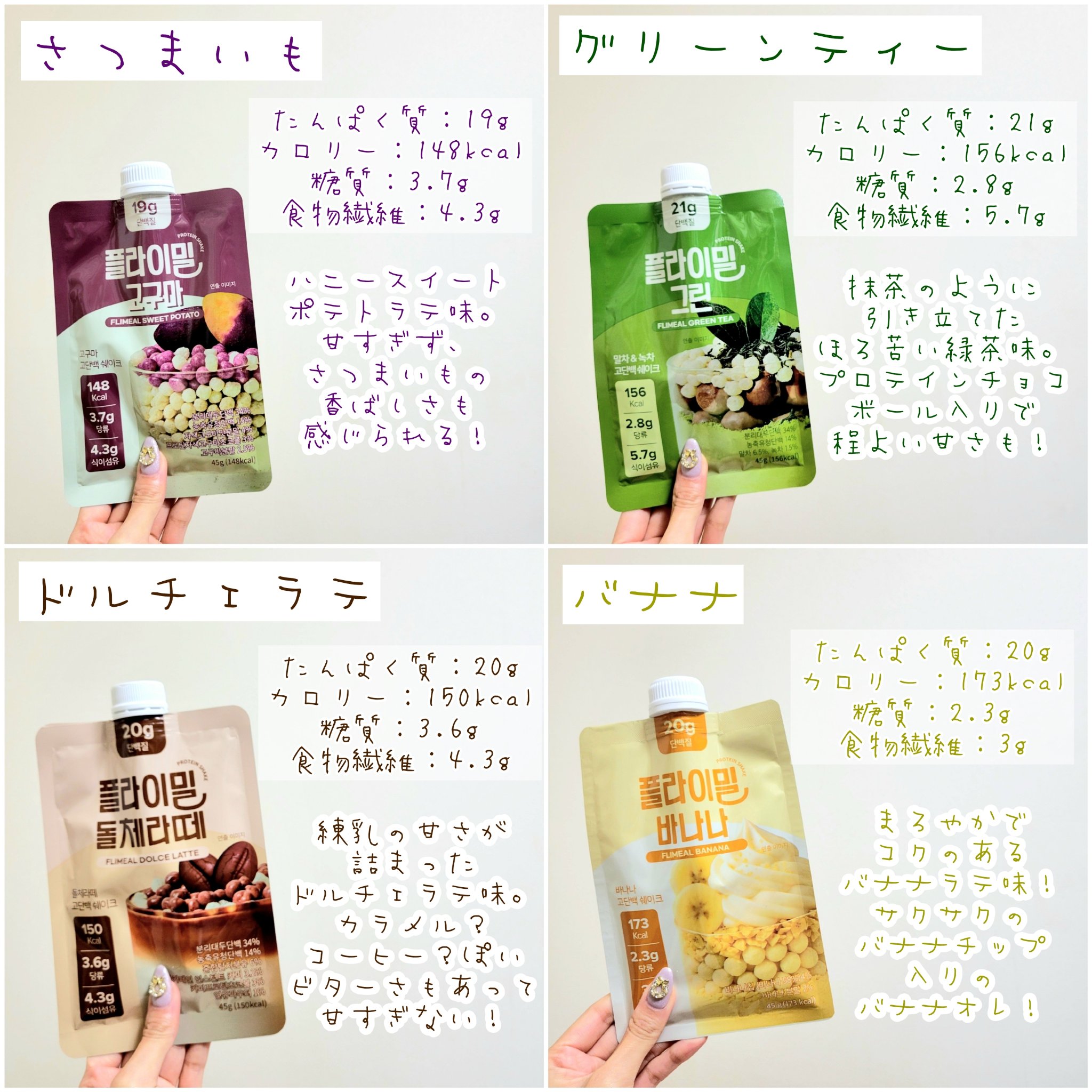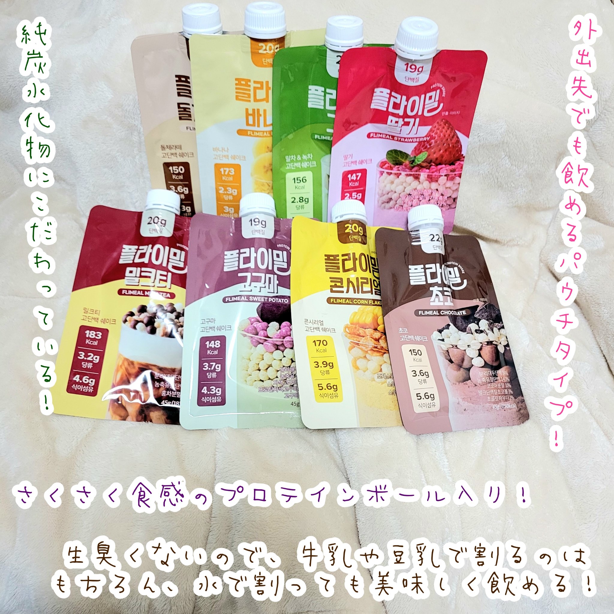 #PRFULLightフライミールプロテインシェイク(9種類)パウチタイプのプロテイン🥛いちごきなこチョコ黒胡椒さつまいもドルチェラテ緑茶コーンシリアルミルクティー水を注いでシェイクするだけですぐに飲める✨サクサクとした噛み応えのプロテインボ...