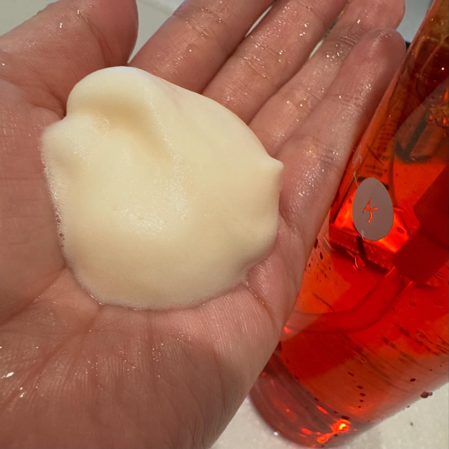 ずっしりしたフォームタイプのポンプ式。 炭酸泡100%の洗顔泡が出てきます‼️ 泡の硬さは、土台美容液を少し硬くした感じ。 香りは土台美容液と同じ、ラムネのような爽やかな香りです☺️ 洗い流すと、しっとり潤いが残っており、肌もツルンと✨ スキンケアの入りも化粧ノリも良いので、朝洗顔にオススメです☀️ こちらを使うと使わないのでは、肌のくすみが全然違うので驚きです‼️