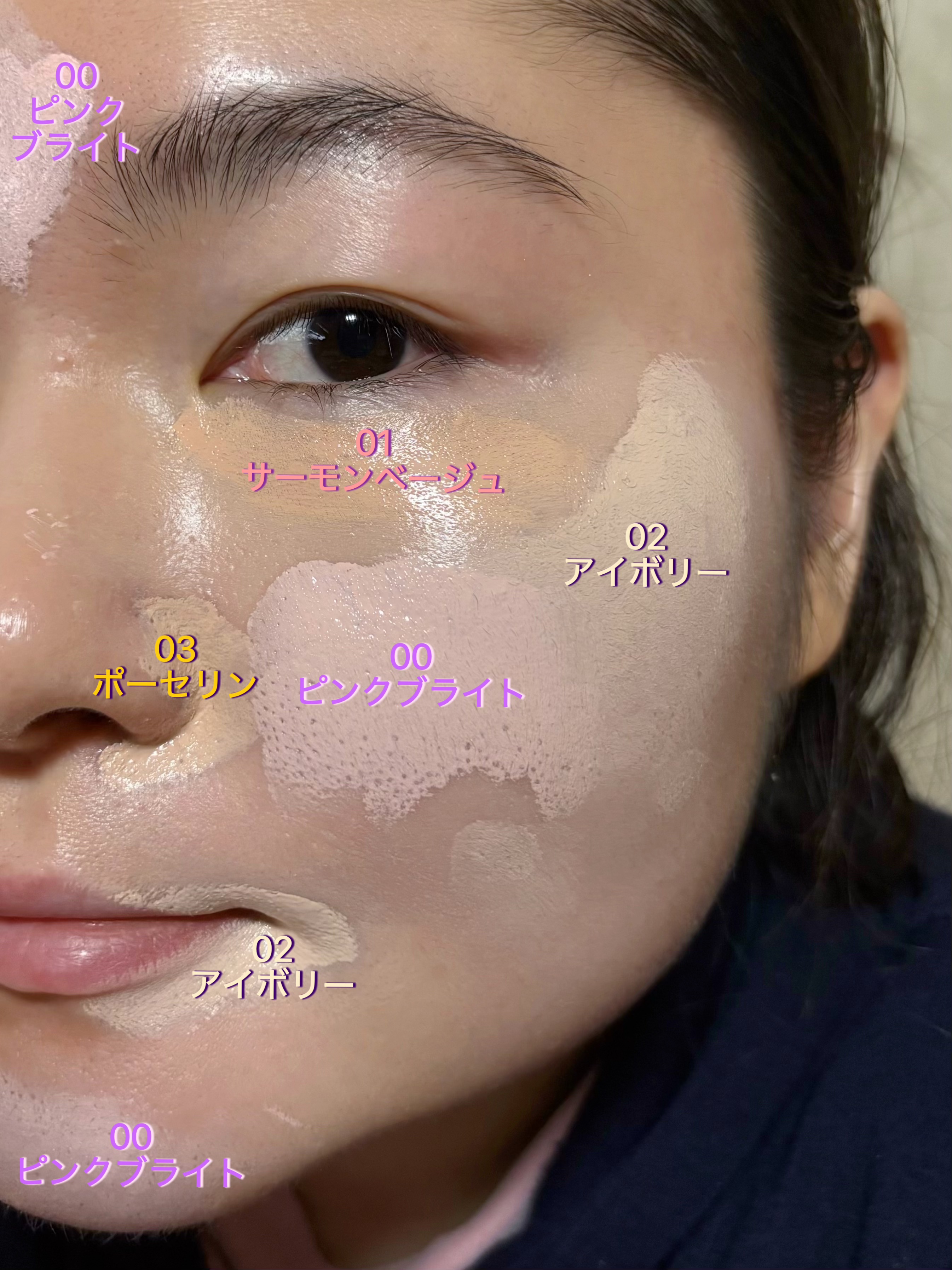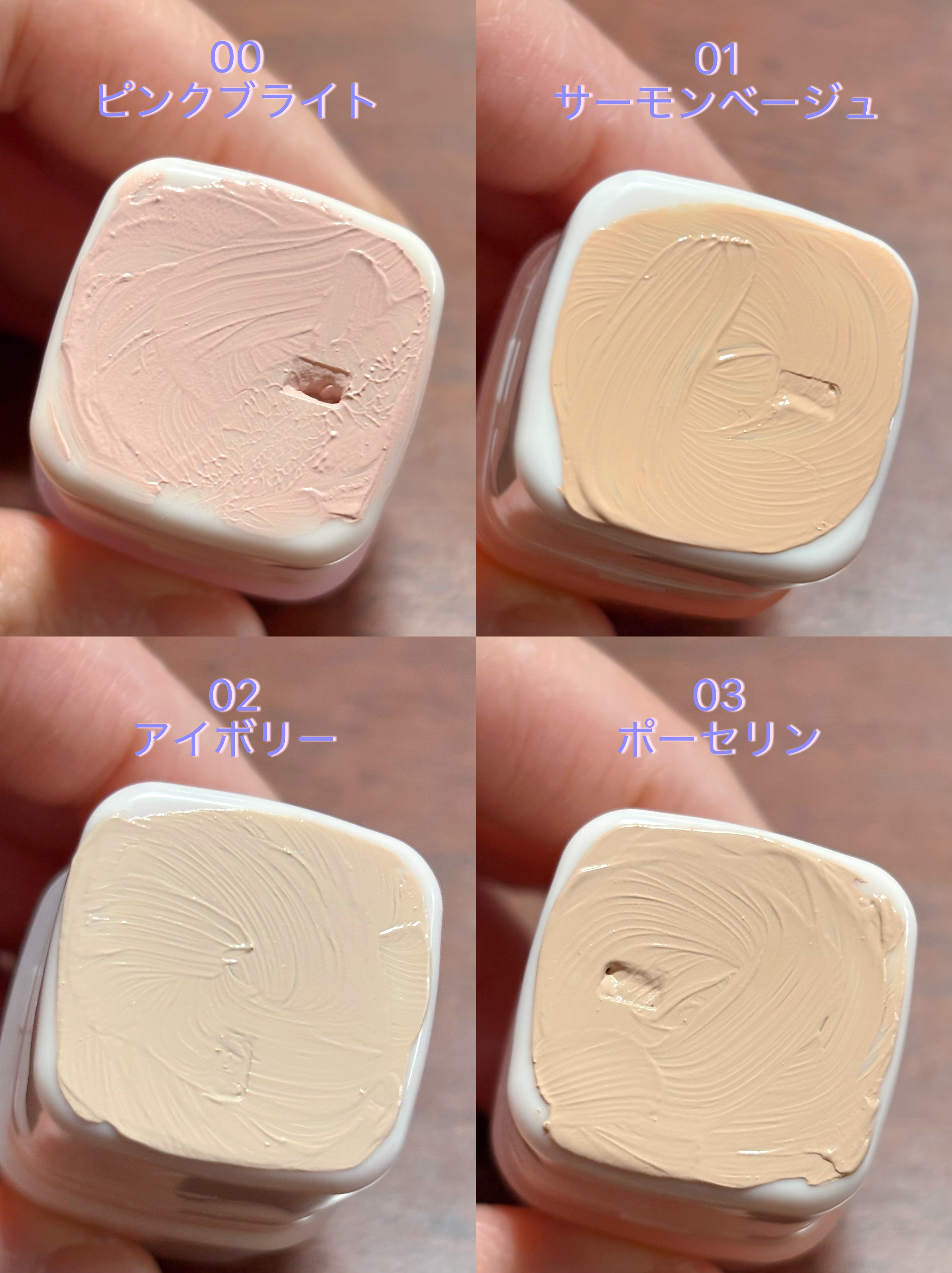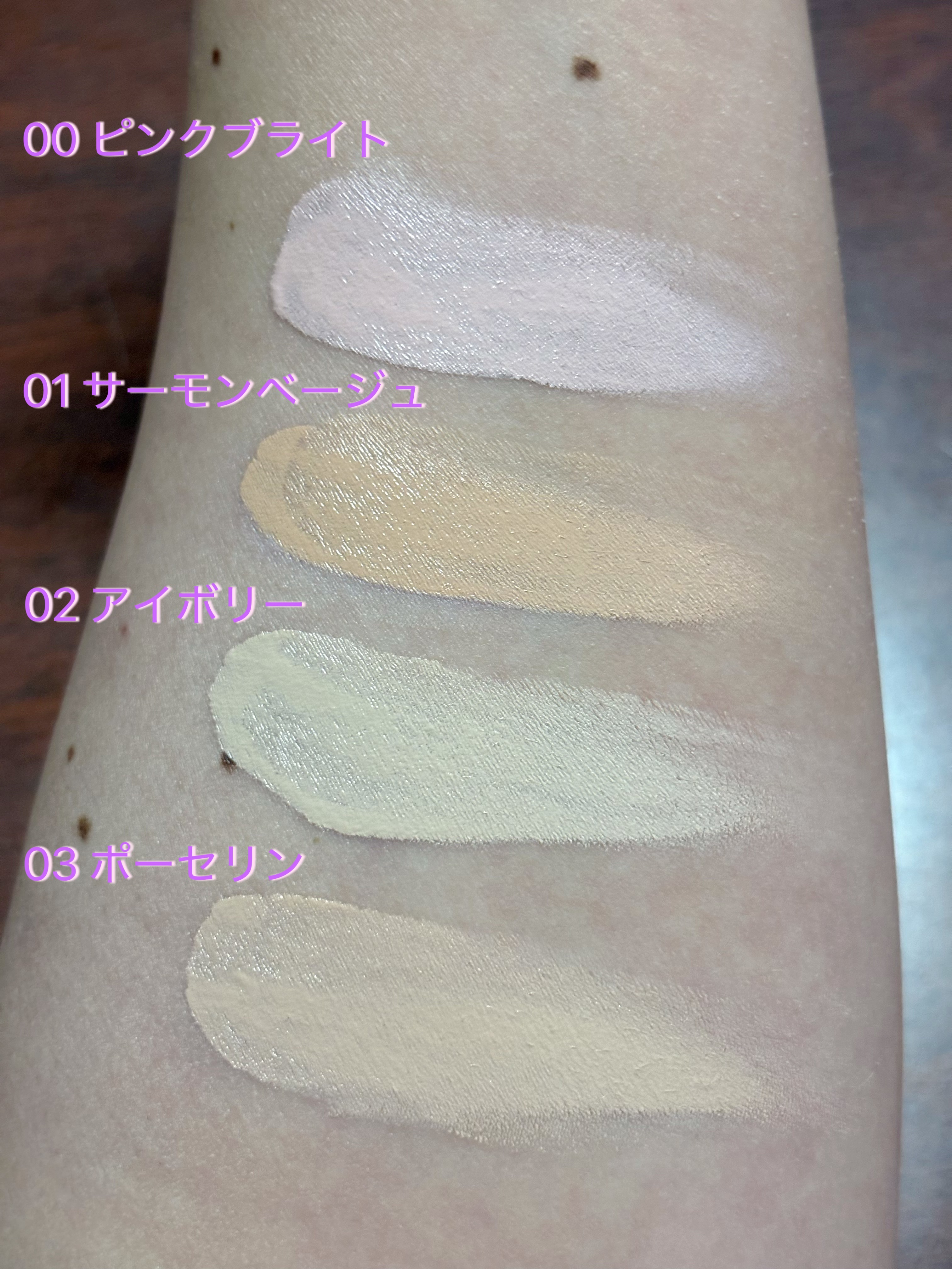 - <00 ピンクブライト> トリ(カプリル酸/カプリン酸)グリセリル、オクチルドデカノール、ヤシ油脂肪酸デシル、ダイマージリノール酸水添ヒマシ油、ポリブテン、合成ワックス、ヒマワリ種子ロウ、ラウリン酸ヘキシル、リンゴ種子油、イソステアリン酸ソルビタン、ポリヒドロキシステアリン酸、ツバキ種子油、シリカ、パルミチン酸エチルヘキシル、ミリスチン酸イソプロピル、イソステアリン酸、レシチン、ステアラルコニウムヘクトライト、ポリリシノレイン酸ポリグリセリル-3、香料、ジミリスチン酸Al、炭酸プロピレン、(ビニルジメチコン/メチコンシルセスキオキサン)クロスポリマー、カプリリルグリコール、カプリル酸グリセリル、加水分解ヒアルロン酸、マデカッソシド、ナイアシンアミド、PCA亜鉛、水、グリセリン、1,2-ヘキサンジオール、水溶性コラーゲン、酸化チタン、マイカ、酸化鉄 <01 サーモンベージュ> トリ(カプリル酸/カプリン酸)グリセリル、オクチルドデカノール、ヤシ油脂肪酸デシル、ダイマージリノール酸水添ヒマシ油、ポリブテン、合成ワックス、ヒマワリ種子ロウ、ラウリン酸ヘキシル、リンゴ種子油、イソステアリン酸ソルビタン、ポリヒドロキシステアリン酸、ツバキ種子油、シリカ、レシチン、パルミチン酸エチルヘキシル、ミリスチン酸イソプロピル、イソステアリン酸、ステアラルコニウムヘクトライト、ポリリシノレイン酸ポリグリセリル-3、香料、炭酸プロピレン、(ビニルジメチコン/メチコンシルセスキオキサン)クロスポリマー、ジミリスチン酸Al、カプリリルグリコール、カプリル酸グリセリル、加水分解ヒアルロン酸、マデカッソシド、ナイアシンアミド、PCA亜鉛、水、グリセリン、1,2-ヘキサンジオール、水溶性コラーゲン、酸化チタン、マイカ、酸化鉄 <02 アイボリー> トリ(カプリル酸/カプリン酸)グリセリル、オクチルドデカノール、ヤシ油脂肪酸デシル、ダイマージリノール酸水添ヒマシ油、ポリブテン、合成ワックス、ヒマワリ種子ロウ、ラウリン酸ヘキシル、リンゴ種子油、イソステアリン酸ソルビタン、ポリヒドロキシステアリン酸、ツバキ種子油、シリカ、レシチン、パルミチン酸エチルヘキシル、ミリスチン酸イソプロピル、イソステアリン酸、ステアラルコニウムヘクトライト、ポリリシノレイン酸ポリグリセリル-3、香料、ジミリスチン酸Al、炭酸プロピレン、(ビニルジメチコン/メチコンシルセスキオキサン)クロスポリマー、カプリリルグリコール、カプリル酸グリセリル、加水分解ヒアルロン酸、マデカッソシド、ナイアシンアミド、PCA亜鉛、水、グリセリン、1,2-ヘキサンジオール、水溶性コラーゲン、酸化チタン、マイカ、酸化鉄 <03 ポーセリン> トリ(カプリル酸/カプリン酸)グリセリル、オクチルドデカノール、ヤシ油脂肪酸デシル、ダイマージリノール酸水添ヒマシ油、ポリブテン、合成ワックス、ヒマワリ種子ロウ、ラウリン酸ヘキシル、リンゴ種子油、イソステアリン酸ソルビタン、ポリヒドロキシステアリン酸、ツバキ種子油、シリカ、レシチン、パルミチン酸エチルヘキシル、ミリスチン酸イソプロピル、イソステアリン酸、ステアラルコニウムヘクトライト、ポリリシノレイン酸ポリグリセリル-3、香料、ジミリスチン酸Al、炭酸プロピレン、(ビニルジメチコン/メチコンシルセスキオキサン)クロスポリマー、カプリリルグリコール、カプリル酸グリセリル、加水分解ヒアルロン酸、マデカッソシド、ナイアシンアミド、PCA亜鉛、水、グリセリン、1,2-ヘキサンジオール、水溶性コラーゲン、酸化チタン、マイカ、酸化鉄