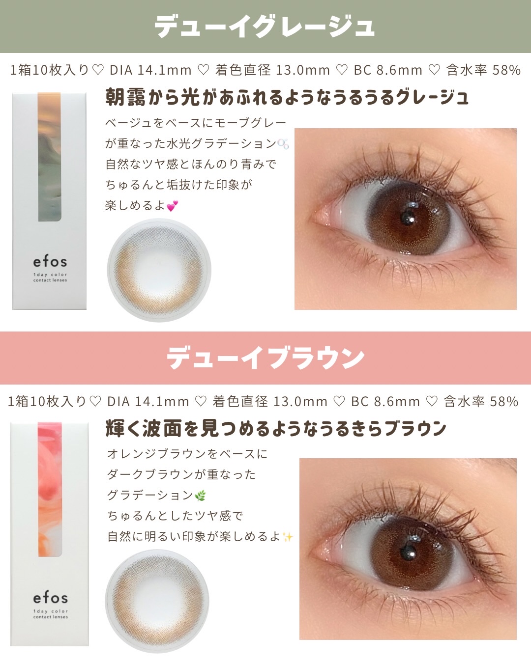エフォスの抜け感儚げデザインのカラコンをご紹介! フチは黒いんだけど、内側がピンクだから女の子らしさも演出出来る♡ 普段使いしやすいモーヴ系カラコン♡ モーヴって一見派手になりやすそうだけど、じゅわっとしたフチだから自然!