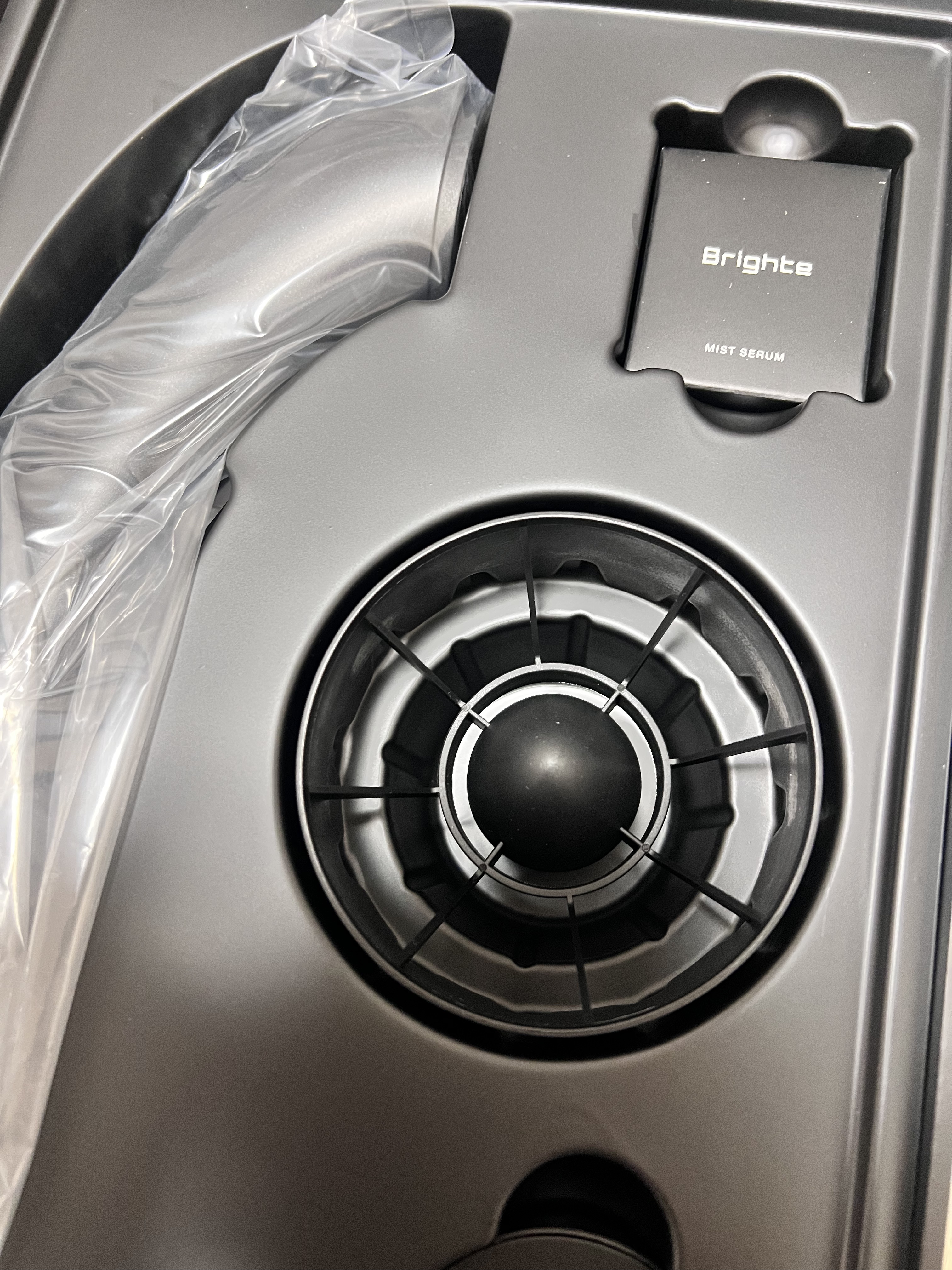 - ■ナノ化されたミストで髪の深部までうるおいケア 粒子サイズを1μm(0.001mm)前後にナノ化した美容液が、ドライヤーからミストとして噴射し髪に浸透します。ミストセラムに配合した髪の補修に優れた美髪成分(ヒアルロン酸*1、浸透型ケラチン*2、浸透型シルク*3等)が、髪の深層部にまでしっかり届くことで、髪本来の潤いを引き出し、毛先までしっとりとまとまりのある理想的な美髪を実現。乾かす時間を美容時間にアップデートします。 *1 ヒアルロン酸ナトリウム(補修) *2 加水分解ケラチン(補修) *3 加水分解シルク(補修) ■軽量なのに大風量でパワフル 約357g*1と軽量なボディでありながら、風量は驚くほどパワフル。超高速モーターと、飛行機のジェットエンジン機能を活かしたBrighte独自の技術で風路設計を最適化。2.58㎥/分*2という大風量で圧倒的な速乾を実現しました。 *1本体のみ *2自社測定、ブーストアタッチメント装着、3段風量(強)時 ■美髪テクノロジー搭載 ・すぐれた熱伝導性と電気伝導性を兼ね備えた「グラフェン」の遠赤外線 ヘッド部分の中央に、すぐれた熱伝導性と電気伝導性を兼ね備えた素材「グラフェン」を採用。 表面だけ乾燥した髪はうねりの原因に。 グラフェンが放出する遠赤外線により熱分散がより均一になり、髪の内側からやさしく乾かします。 生乾きすることなく乾かしすぎを防ぎ、最適な水分バランスを実現します。 ・デュアルイオンテクノロジー効果 プラスとマイナス両イオンを備えたBrighte 独自のデュアルイオンテクノロジーの相乗効果で、髪の毛一本一本をケア。 プラスイオンで髪の表面を整えながら、マイナスイオンで静電気を抑え髪のまとまりを向上させます。 ・頭皮にうれしいLEDテクノロジー 吹出口周辺には、エイジングケア*する赤色LEDと、頭皮のベタつきを抑え整肌する青色LEDを搭載し、髪だけでなく頭皮環境にもアプローチします。 *年齢に応じたケア