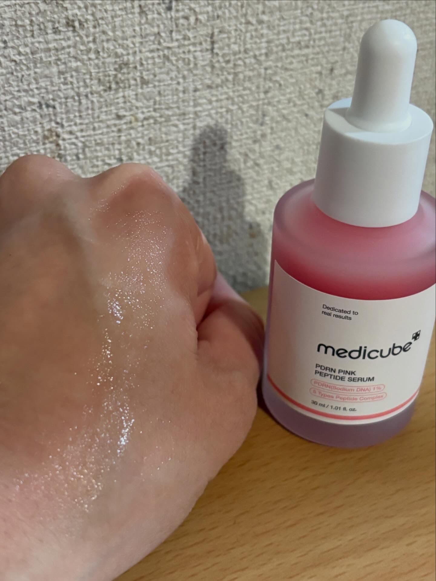 超話題の美容液【メディキューブ PDRNピンクアンプル】💕 家で出来る高級エステ級のケアができる美容液🌸 サーモンPDRNっていうのが1%(めちゃくちゃ多い)入っていて、これが人間の肌の組織に95%類似したサーモンDNA成分で、肌の生まれ変わりをサポートしてシミ・くすみ・ニキビ跡を薄くして透明感を爆上げしてくれる😍 実際使ったらめっちゃしっとり~😍けどベタつかない!! 翌朝はお肌がモチモチしてうるおいが継続してる感じ🤭