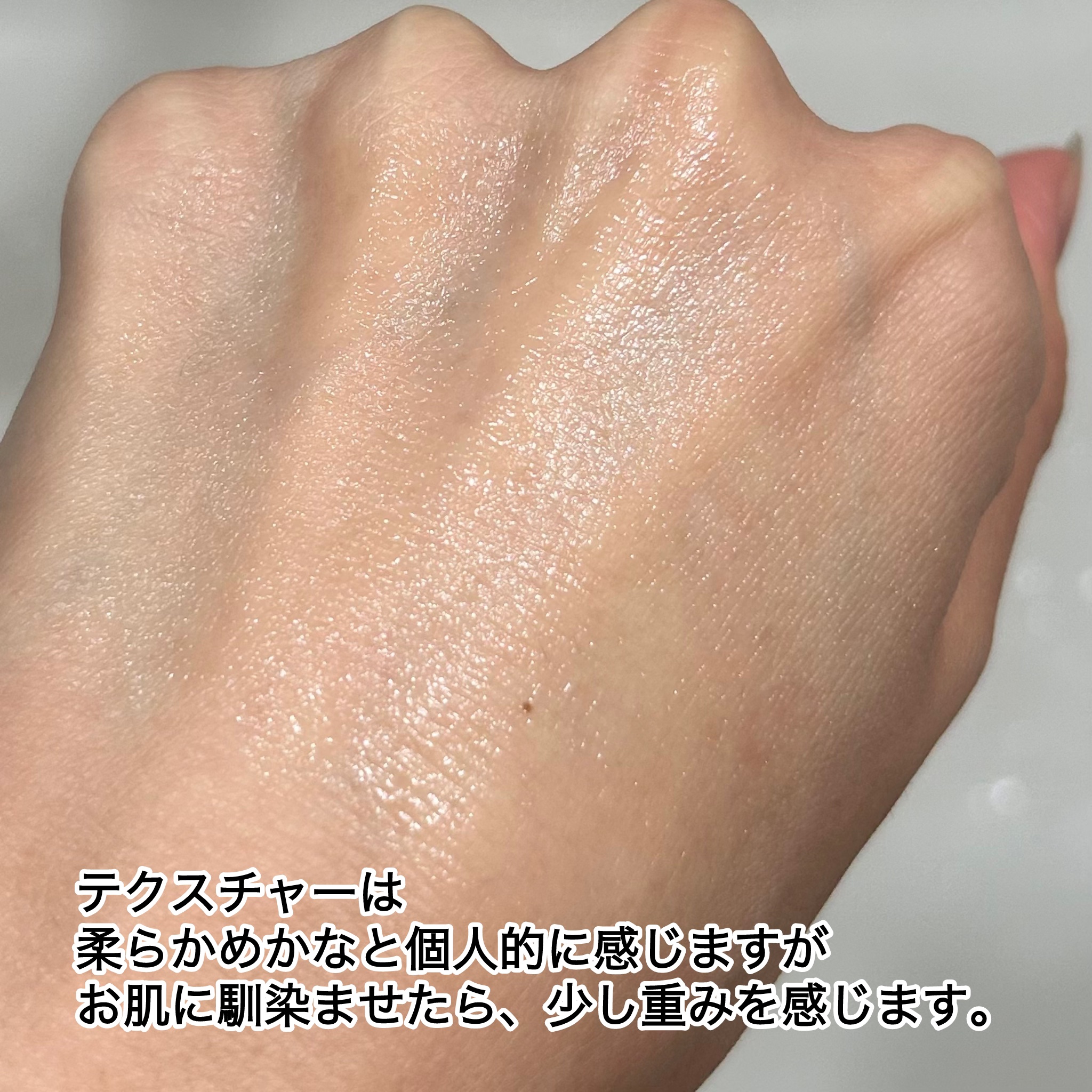 潤い感、透明感、ツヤ感があります♡ リップバームのような質感でしょうか。かためのテクスチャーです。 リップにもチークにも使える優れアイテム♡ しっかりお色がつきます。初めは少量で塗る回数を重ねて、お色味を調整すると○だと思います。 黒のCHANELマークにガラスの容器が素敵です♡ 気分が上がります♡いろんな使い方ができるところが◎だと思います♡