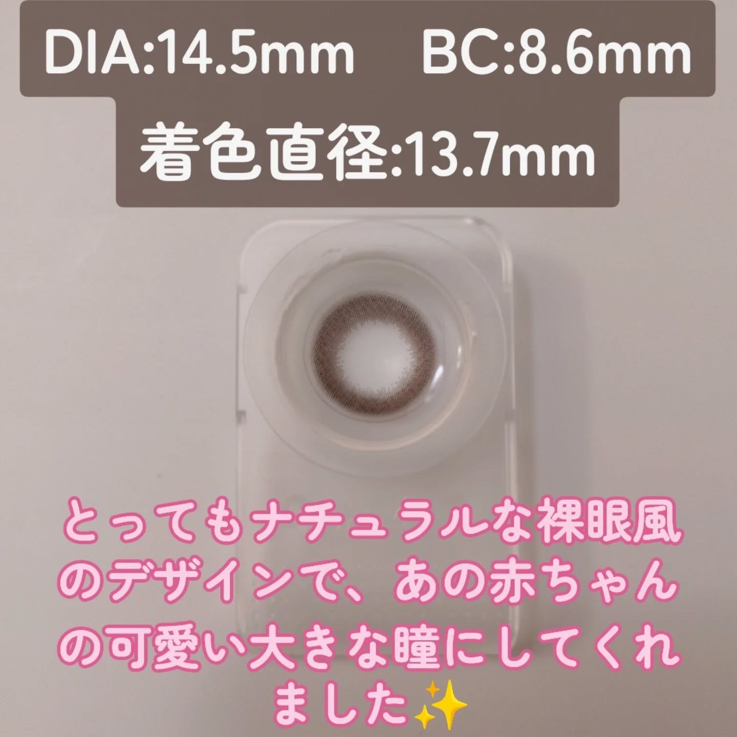 ちゅるんダークブラウンで赤ちゃんのような瞳になれるナチュラル盛れレンズ。フチが若干ぼやっとしたデザイン、だけどぼやけすぎないから本当に裸眼のような仕上がり。 かなりナチュラル。だけど確実に盛れる優秀カラコン。これ学生さんでも学校につけていけそうだけどどうだろう? どんな時でも付けやすいカラコンだなと感じました!リピ確○