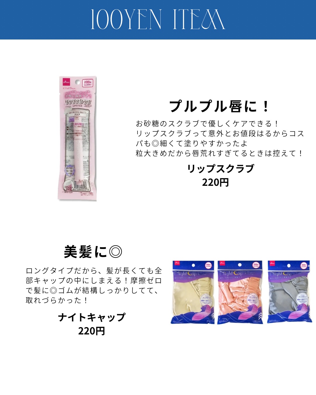 DAISO トリートメントキャップ | 110円 |