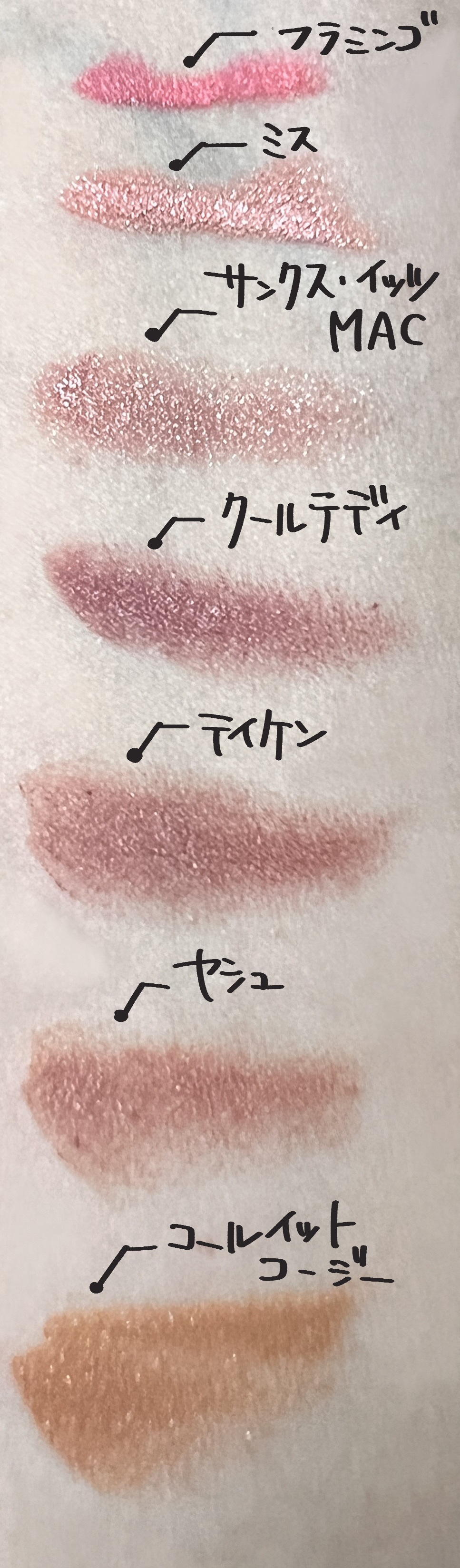 せっかく新版パウダーキスを手に入れたので、自分の持っているピンクorベージュ系のMACと比較しました。ビビッドスプリングorウォームスプリングの肌に乗せて比較します。キュートでストレートです。3枚目だけ目があるので注意(チーク使いの例)・フラ...