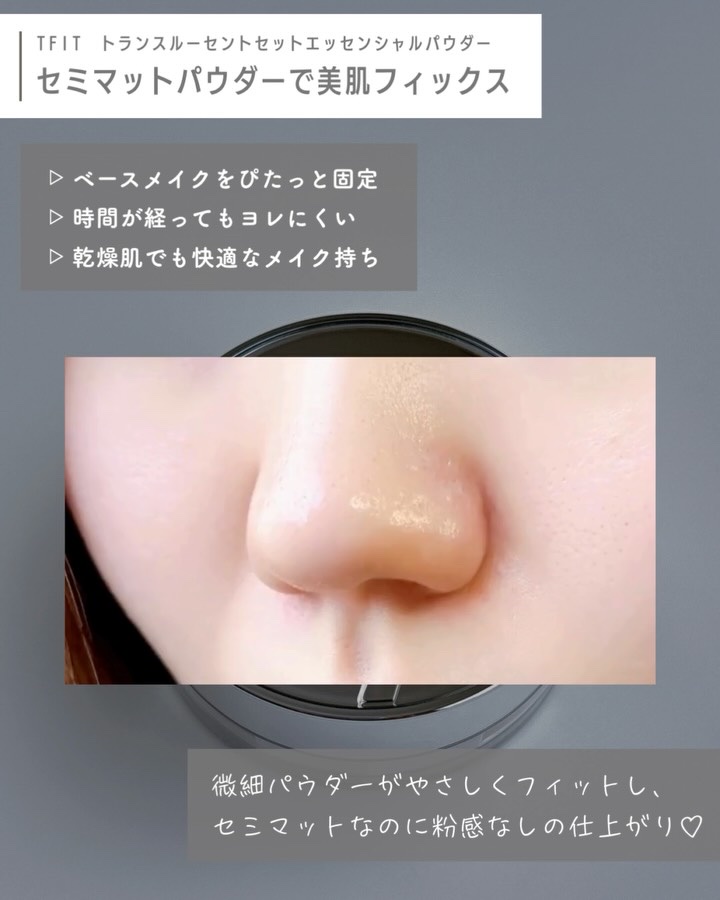 かなり話題になって気になってたこちら👇【TFIT トランスルーセントセットエッセンシャルパウダー】表面さらっと、内側しっとりエッセンシャルパウダー。🔶(乾燥肌向け)保湿パウダー水分保持率93.38%!粉浮きや乾燥感のない仕上がりを実現。🔶表面...