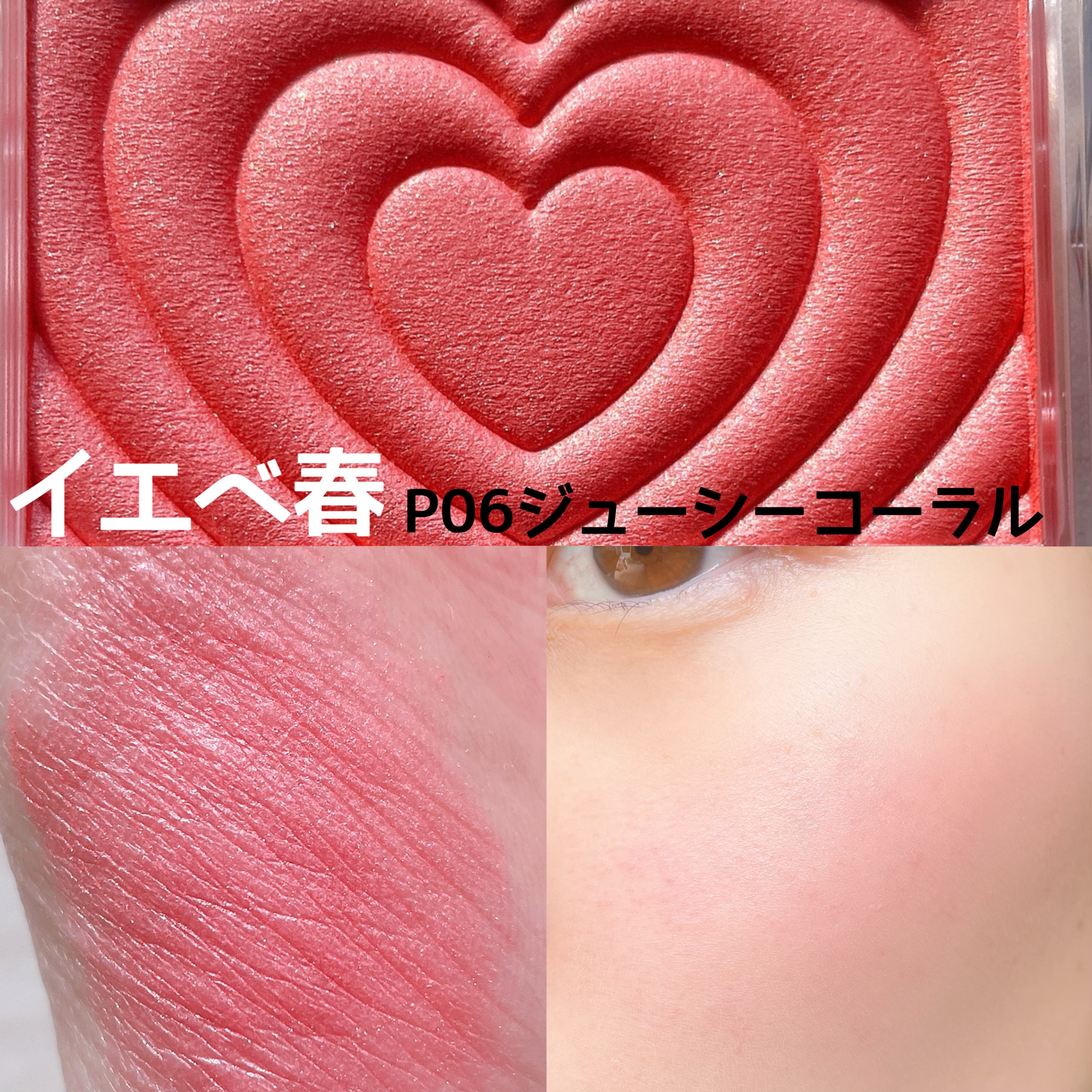 - 生まれ変わった、新・パウダーチークス! クリアな発色でしっとり溶け込むようなツヤ感単色チーク♡ 1.デザインがさらに可愛く♡ 使うたびにキュンとしちゃうハートデザイン♪ 2. 中身がもっと魅力的に ・しっとり感UP!※ ムラになりにくいクリアな発色 ・パール感がさらに繊細に!※ 溶け込むような自然なツヤ感です♪ 3. ブラシの毛量UP※ 広範囲に広げやすいふんわりブラシに進化! ※当社従来品比