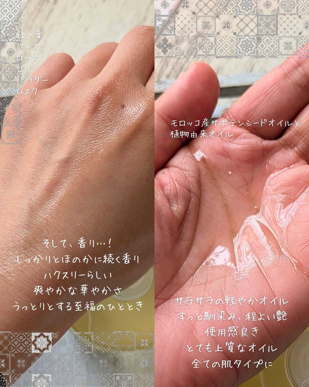 【ハクスリーの香りも楽しめるボディオイル】⭐️Huxleyボディオイルモロッカンガーデナー・ブルーメディナタンジェリン⭐️こんにちは!もちもち大福です。今回はHuxleyボディオイルモロッカンガーデナー・ブルーメディナタンジェリンを紹介したい...