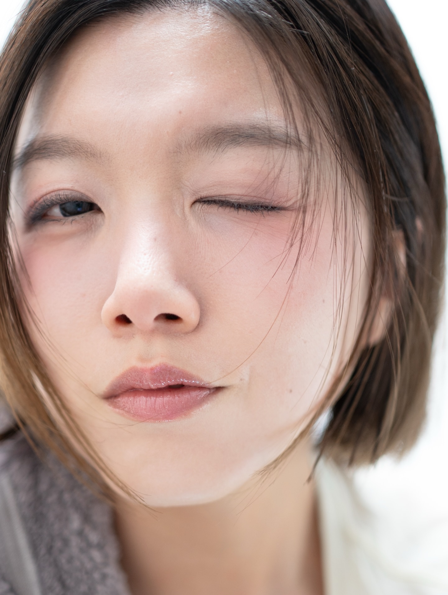 SUQQUS03霜来。青みを含んだグレイッシュトーンが、目元を静かに引き締める一色。甘さや柔らかさに寄らず、線が整うような端正な仕上がりが印象的。繊細なシルバーラメは主張しすぎず、光を受けた瞬間だけ、凛とした輝きを添える。重ねても濁らず、時間...