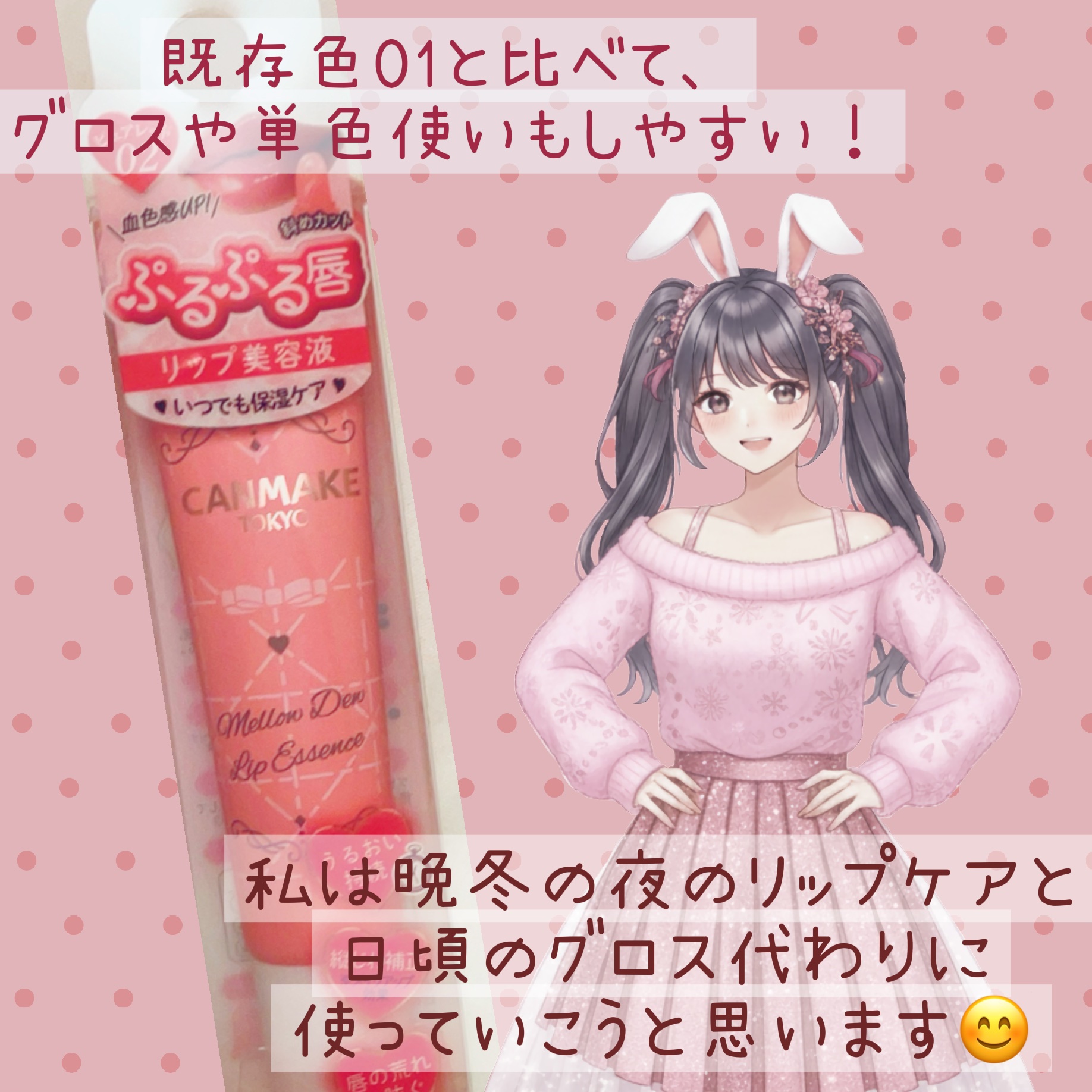 【先行発売】CANMAKE新色のリップエッセンスが血色UPのうるつや唇になれた💓638円(税込)•*¨*•.¸¸☆*・゚•*¨*•.¸¸☆*・゚•*¨*•.¸¸☆皆さま、ご機嫌よう。あやみーる🐰です!本日は、先行発売で運命的に出会った、キャン...