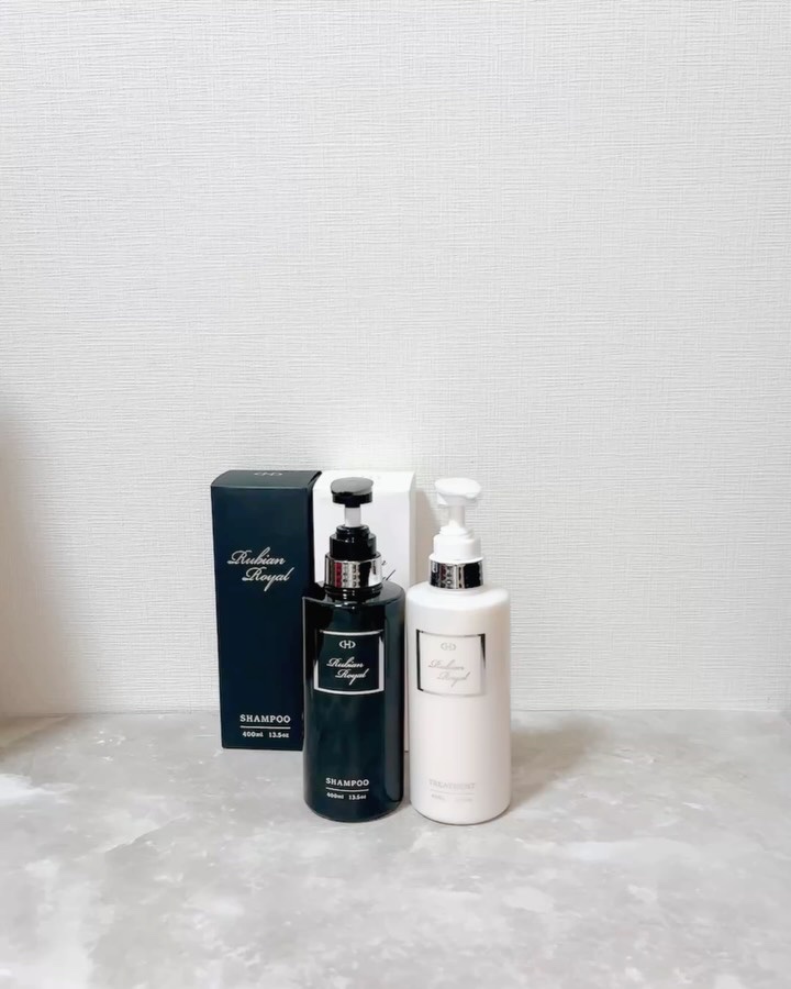 RubianRoyalルビアンロイヤルシャンプー・トリートメントシャンプーはノンシリコン。泡立ち良く、洗い流すと指通りするん♪と良い状態💖トリートメントは柔らかめ。洗い流すと指通りよくまとまる感じ😊香りも強すぎず良いと思います。#PR#モニタ...