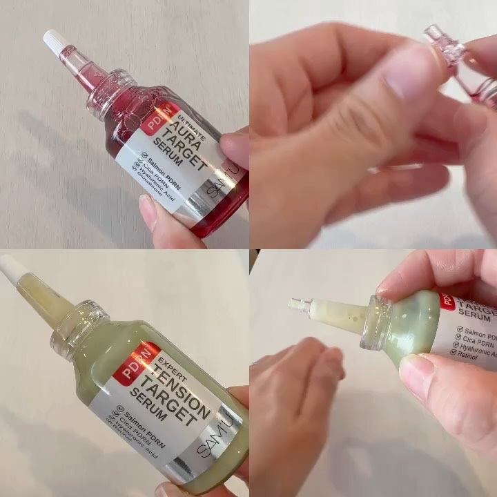 肌に優しく、毛穴ケアが可能な化粧品で有名な【サミュ】から新商品が発売!SAM'UPDRNアルティメットオーラターゲットセラム、PDRNエキスパートテンションターゲットセラムをお試しさせていただきました。自分でキャップを外して、アプリケーターを...