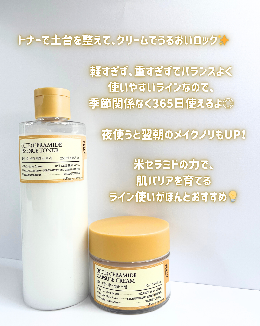 FULLY様よりいただきました。肌にも環境にもやさしいお米由来のスキンケアセット𓏸𓈒𓂃´-『米セラミドエッセンストナー/米セラミドカプセルクリーム』🌾米ぬか水:たっぷりの栄養保湿ツヤ🌾米セラミド:肌のうるおいを守る🌾ビーガン米PDRN:健康的...