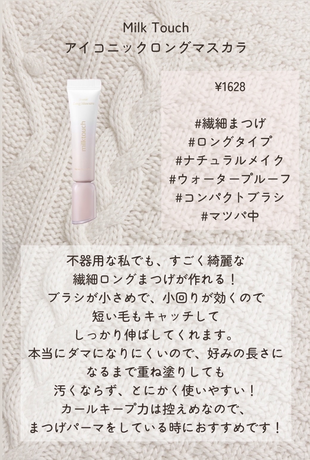 Milk Touch アイコニックロングマスカラ | 1,628円 |
