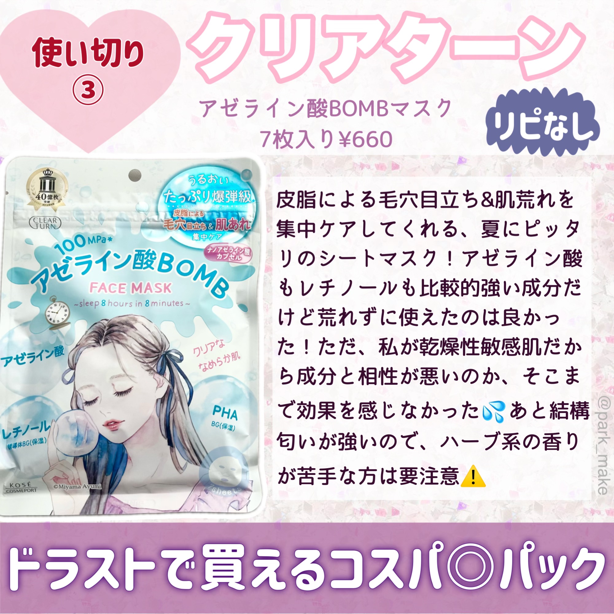 ã¯ãªã¢ã¿ãŒã³ ããããBOMBãã¹ã¯ | 660å |