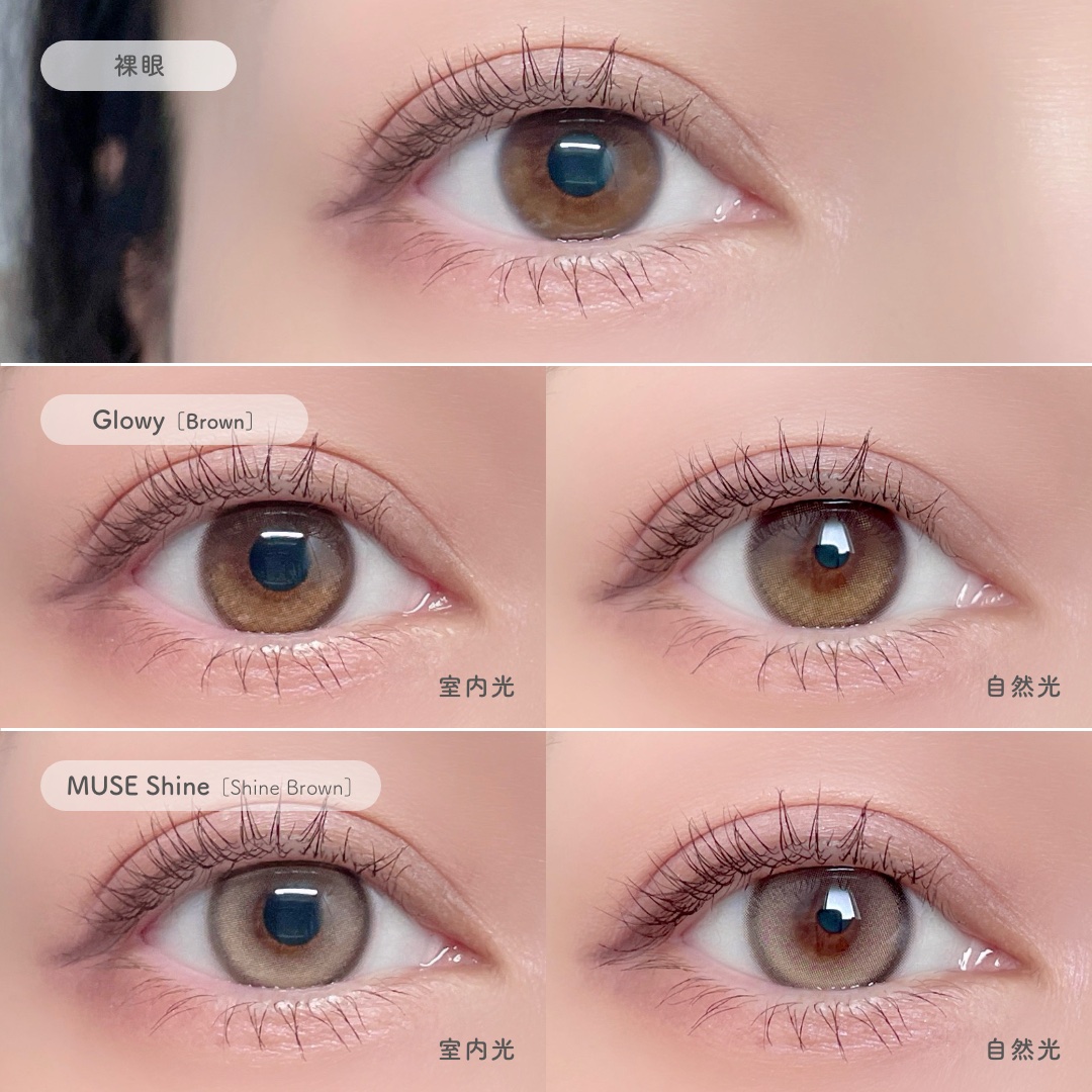 MOLAKのデザインが好きでお気に入り🫰 低含水レンズでドライアイのわたしには乾燥しづらく、1ヶ月使っても最後までほぼ乾く感じはないかな。 新しい方のブラウンバニーは太めフチでくりっとしたはっきりおめめに。 わたしは裸眼が明るめでぼやぁっとしてるので存在感を増してくれる! ドーリッシュグレーはダークグレー〜ライトグレーのグラデーションになっていてうるっとした感じに。 素の瞳が透けてるからそんなにグレー感が強くなく自然な感じが良かった。