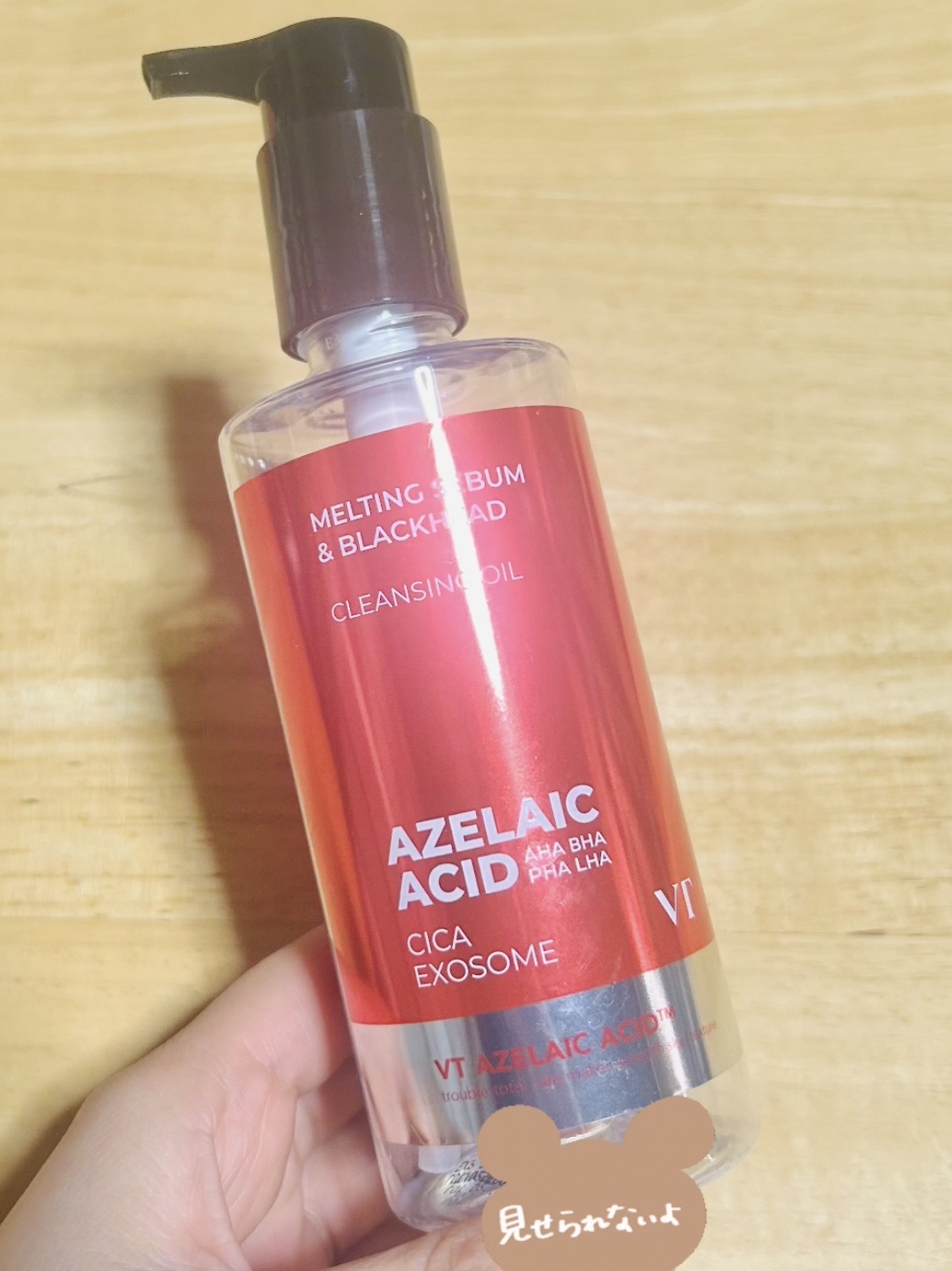- 最近話題の毛穴ケア・整肌成分アゼライン酸!VTからはクレンジングオイルが登場! ポイントメイクまで落とすしっかりした洗浄力で、毛穴・皮脂までケアし保湿まで叶える一石三鳥アゼライン酸クレンジングオイル。 19種の植物性オイル*1も配合で、目に見えるブラッドヘッド*2から、隠れているホワイトヘッド*2、皮脂まですっきりケアします! ダブル洗顔不要! ※パッケージリニューアル ■このような方へおすすめ メイク・毛穴までディープクレンジング求める方 クレンジングでスキンケアまで行いたい方 ツッパリ感の少ないクレンジングを探していた方 ブラックヘッド*ケアも行いたい方 *1ダイズ油、アルガニアスピノサ核油、ユズ果実油、コメヌカ油、オタネニンジン種子油、アーモンド油、ザクロ種子油、リンゴ種子油、ホホバ種子油、ツバキ種子油、、バオバブ種子油、ユチャ種子油、ベニバナ種子油、ヒマワリ種子油、ヒポファエラムノイデス油、オリーブ果実油、アボカド油、アンズ核油、クロフサスグリ種子油(いずれも保湿) *2古い角質による