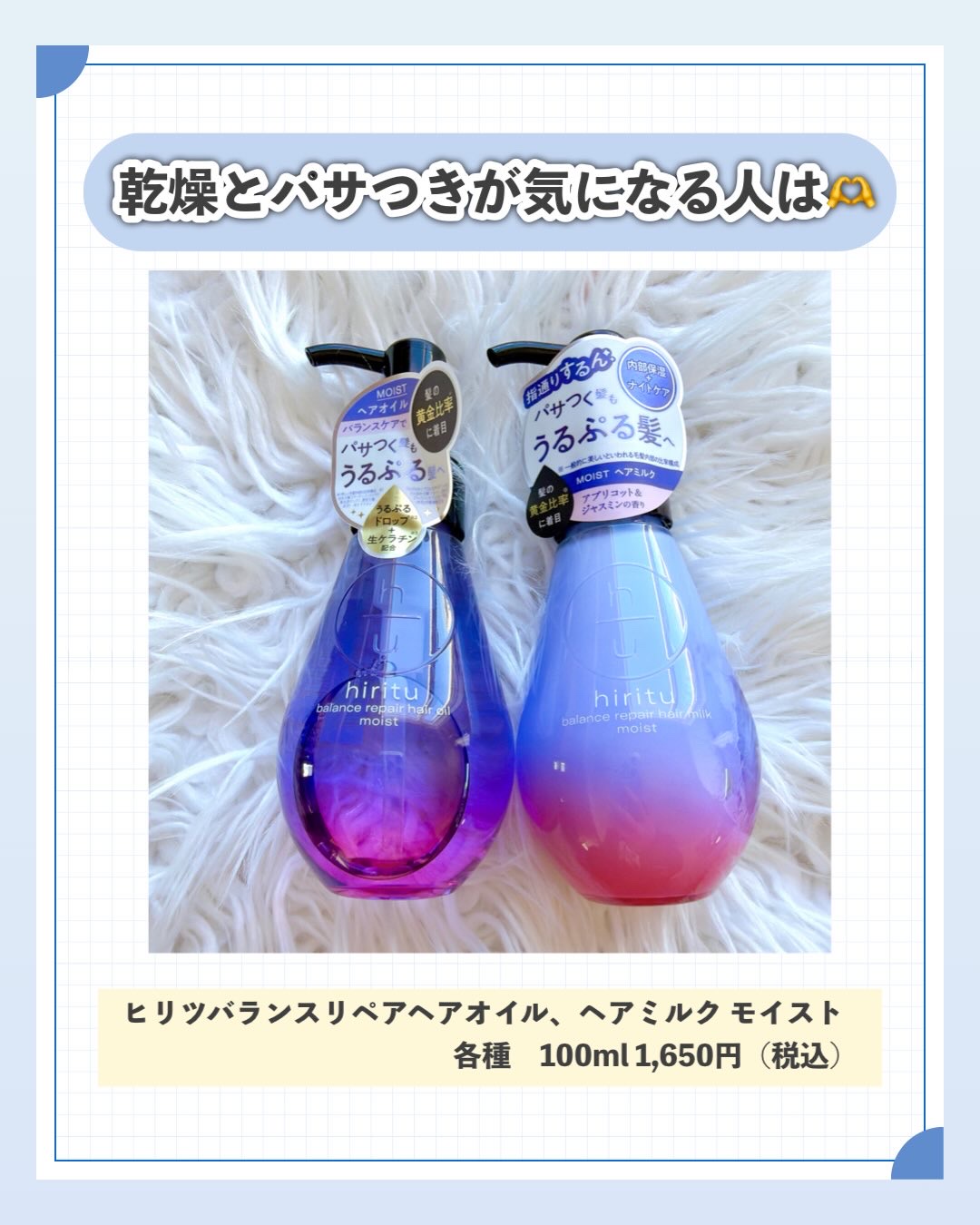 hiritu ヒリツ バランスリペアヘアミルク モイスト | 1,540円 |