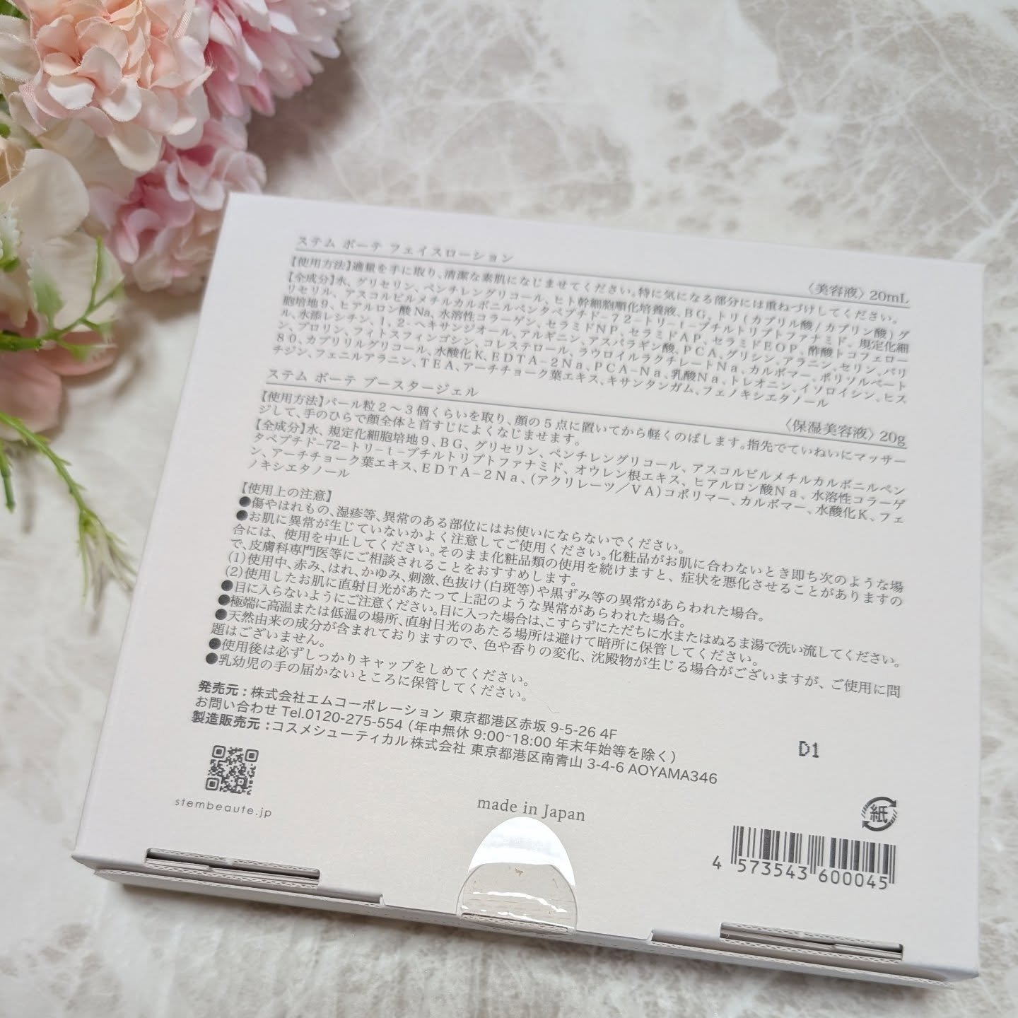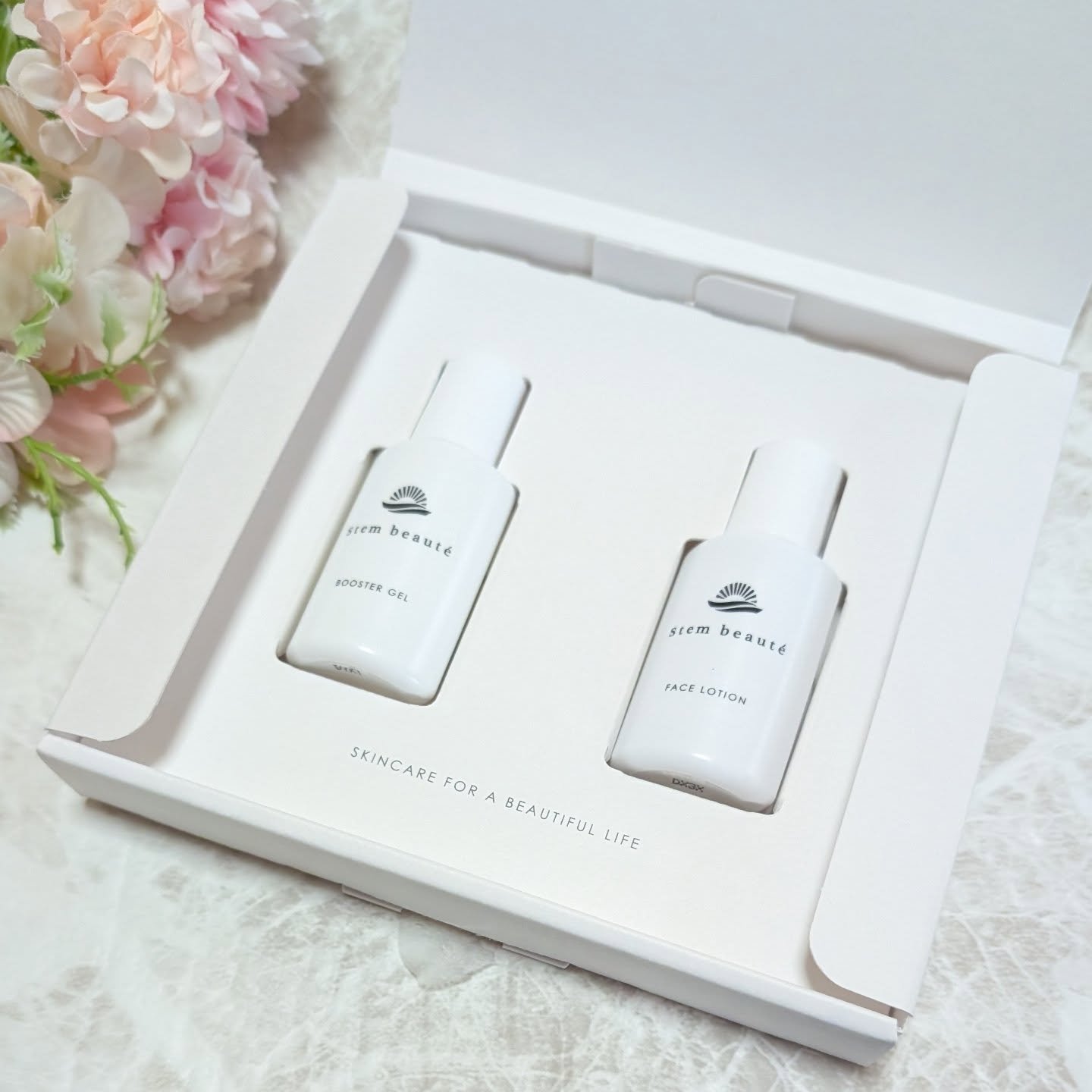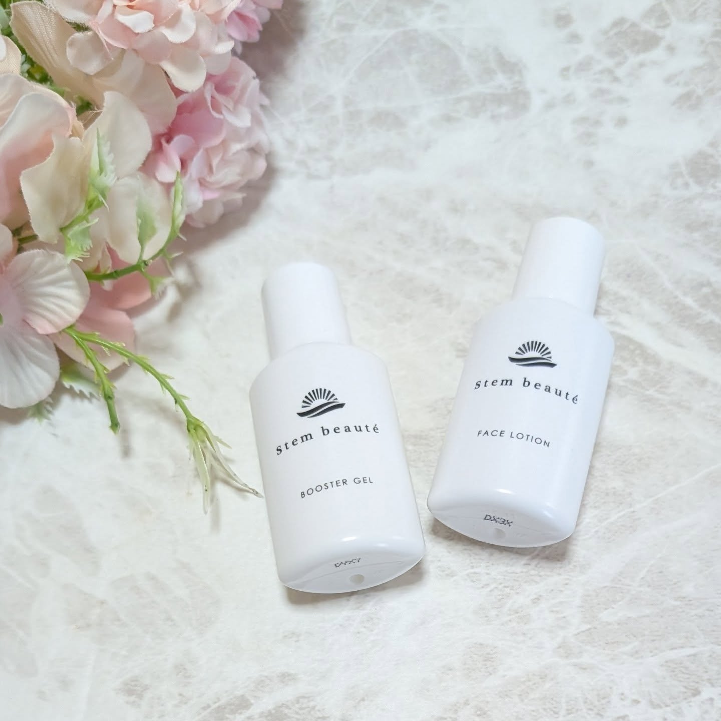 ステムボーテ NEWトライアルセット(ジェル+ローション) 洗顔後、ブースタージェル→ローションの順で使用しますブースタージェルのテクスチャはとろみ強めそしてローションはややとろみのある質感香りはほぼないので使いやすいですトライアルセットの容...