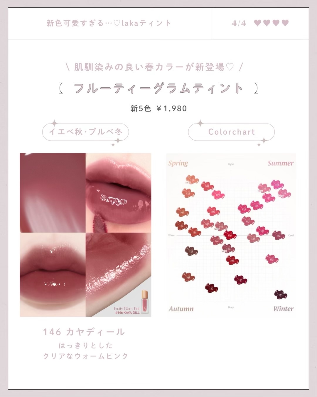 ︴パーソナルカラー別まとめ⊹.˚バズりまくってるLaka新作🤎🍂ロフトとプラザで先行発売中のデビルリップ👾↝♥パーソナルカラー別にまとめたのでぜひお買い物の参考にしてね🛒💭🗒⌇紹介したアイテムはこれ🏹͙⸝⸝⋆#laka#デビルリップ見返せ...