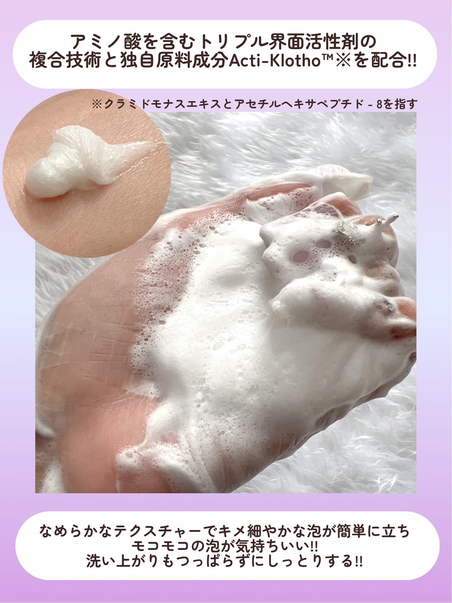 | スキンケアランキング第98位 | 密度のある泡のおかげで直接手が触れることなくほわっほわっ、もふっもふっと包み込むように洗えるの〜♡ | 詳細を見る | |