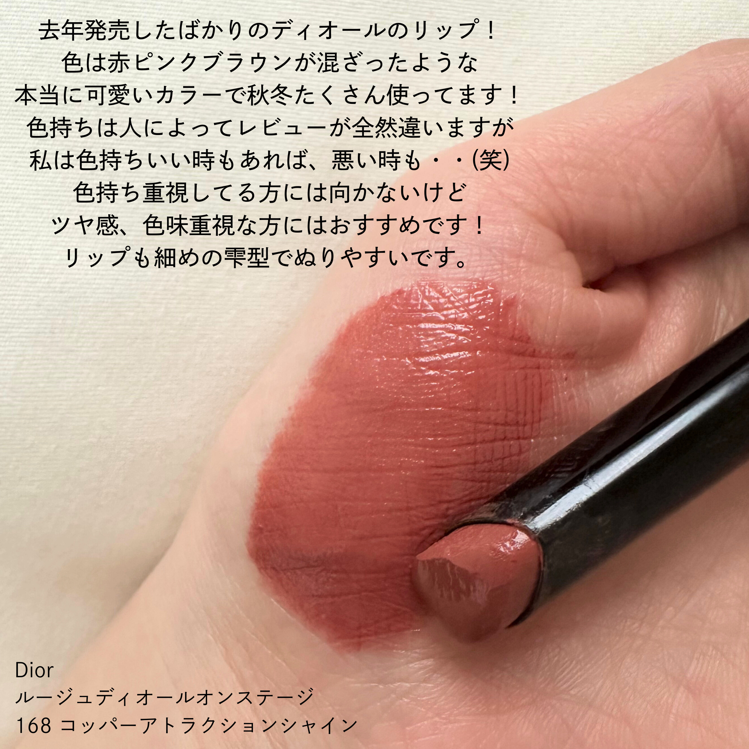 ˗ˏˋDiorルージュディオールオンステージ 168コッパーアトラクションシャインˎˊ˗9/19に発売されたDiorの色持ちがいいって発売前から話題になったリップ!10時オープンと同時に買ってきました!オープンと同時に行ったのに私含めて3人...