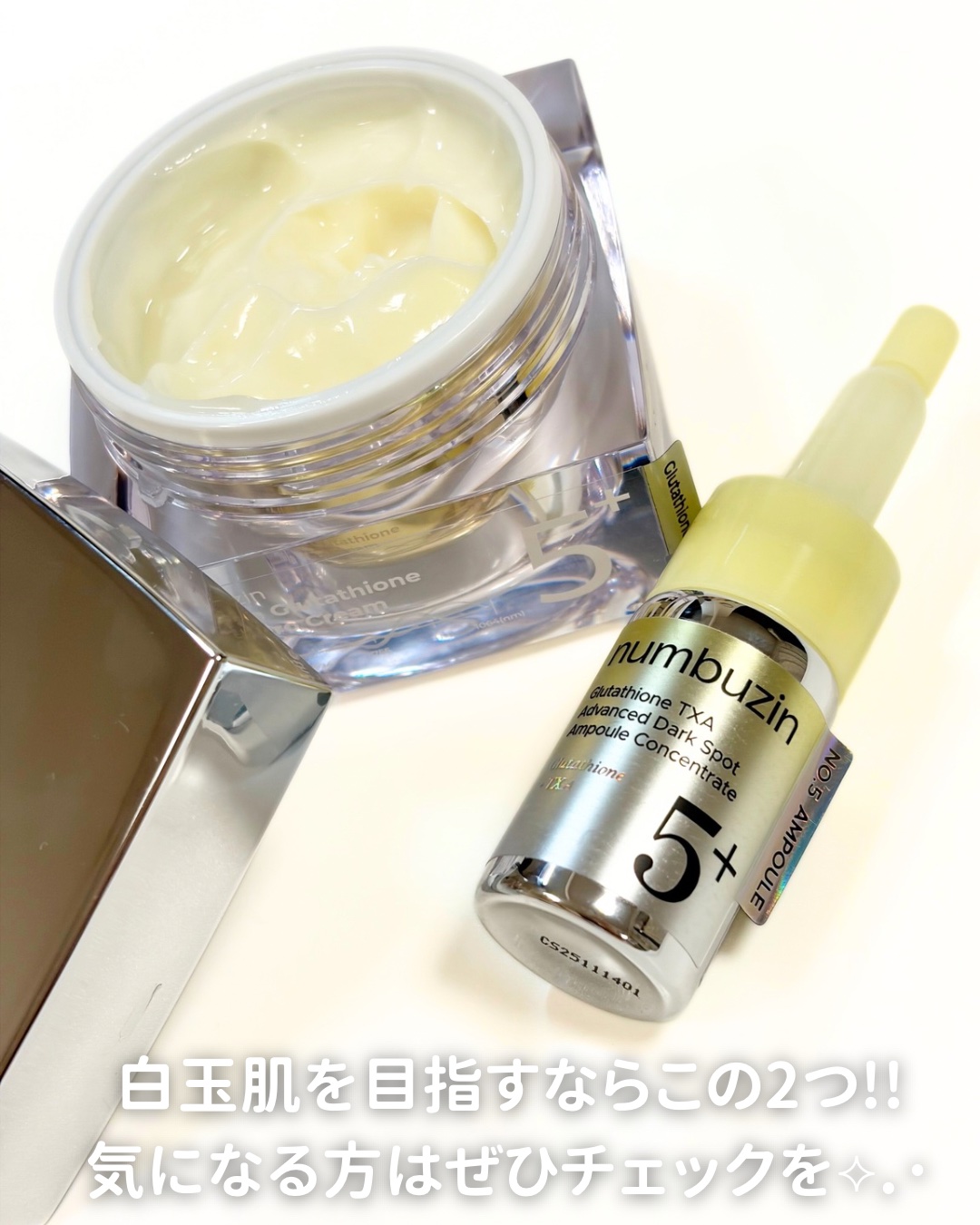 \集中美容液登場/【ナンバーズイン】🌟5番白玉グルタチオンCメラゼロクリーム 🌟5番白玉グルタチオン100✕TXA10集中トーニング美容液ナンバーズインの5番ラインに集中美容液が仲間入り!集中美容液は使う直前に新鮮なグルタチオンパウダーを混ぜ...