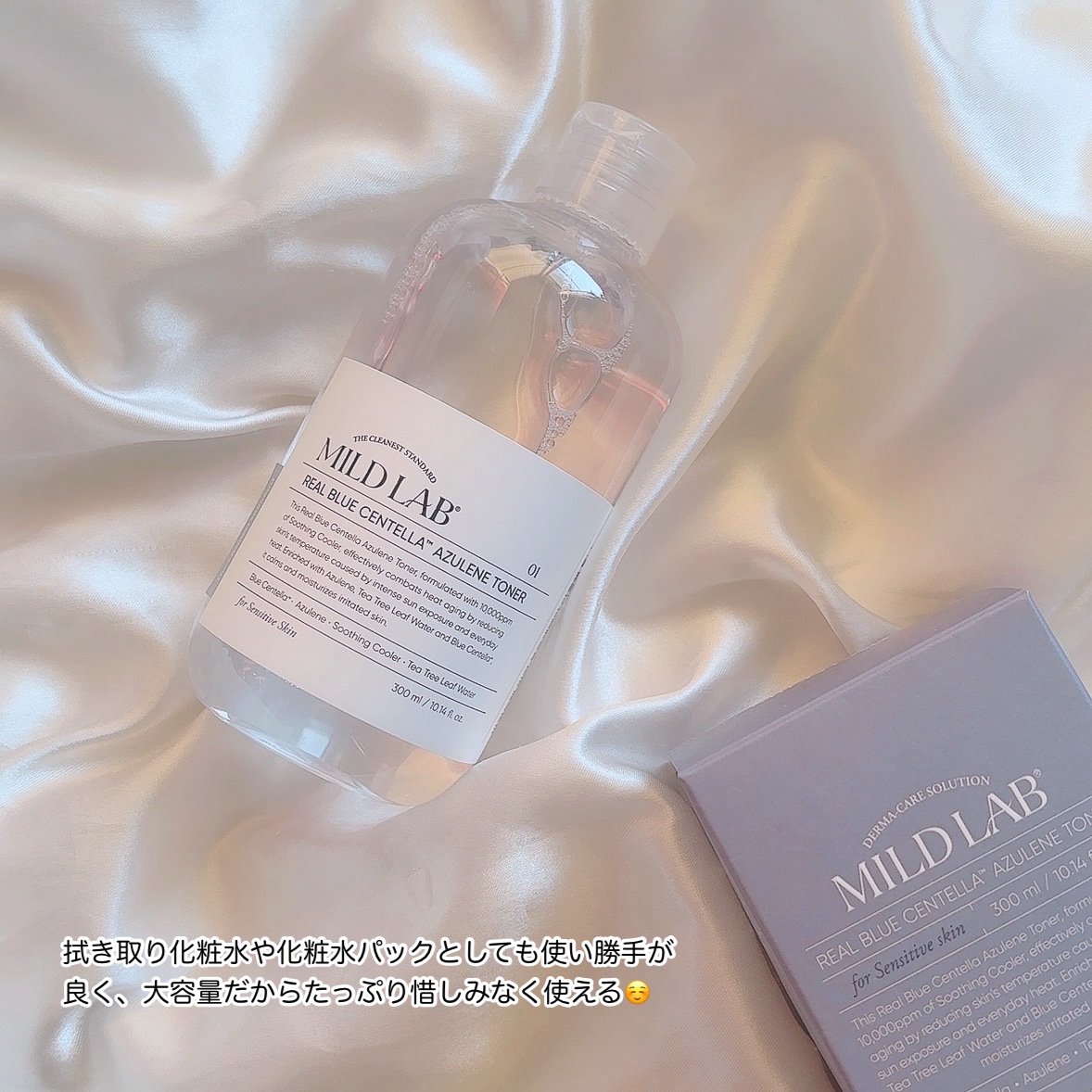 ...MILDLABリアルブルーセンテラアズレンエッセンストナー10種のヒアルロン酸配合で角質層まで浸透🙌🩷美容液のような、乳液ような濃密テクスチャーでブルーセンテラ、アズレン、カモミール花エキスのパワーでゆらいでるお肌にも🥺🩷ベタベタしない...