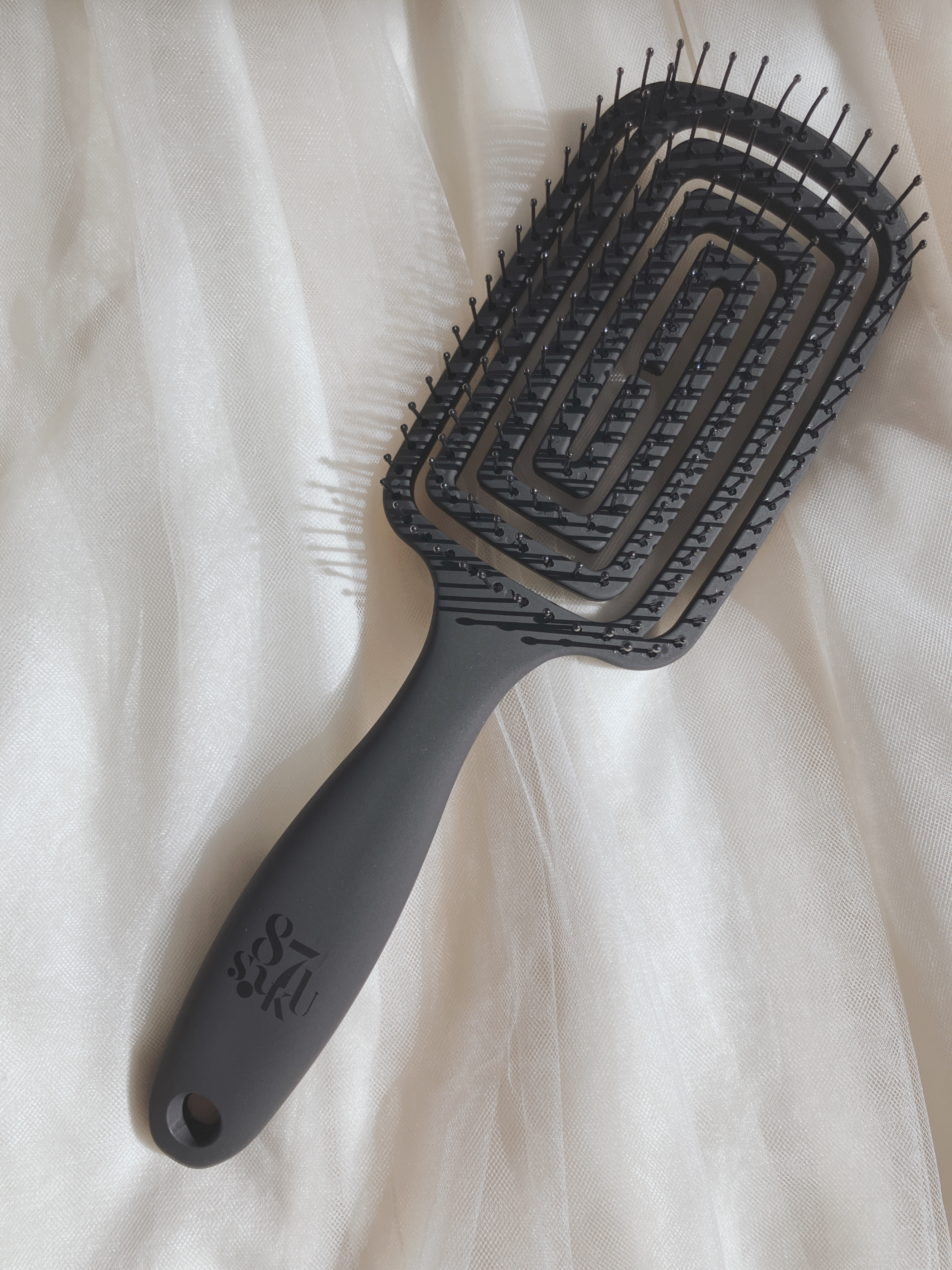 - 風を通すエアフローデザインで、ドライヤーの風を髪全体に均一に分散。根元からすばやく乾かしながら、摩擦を抑えてキューティクルを整えます。乾かしながらツヤを与える、「時短×美髪」設計。乾かす・整える・守るを1本で担う、87sakuの順序最適化理論から生まれた速乾ブラシ。
