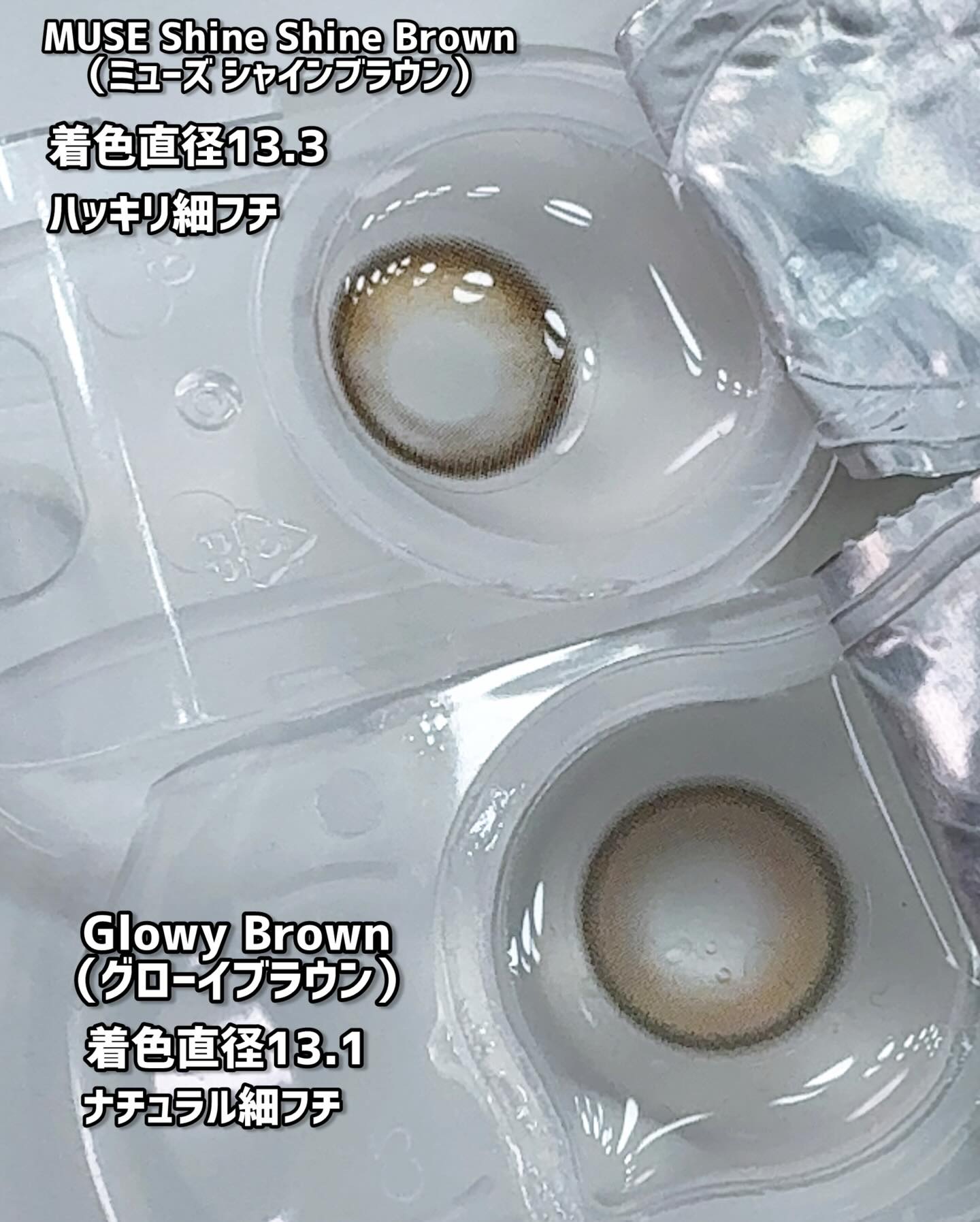 𝙾𝙻𝙴𝙽𝚂界隈別水光カラコン2選♡◾︎𝙼𝚄𝚂𝙴𝚂𝚑𝚒𝚗𝚎𝙱𝚛𝚘𝚠𝚗1dayDIA:14.2mm着色直径13.3mm明るめのベージュブラウンハイライターでビー玉みたいにしっかり盛れるよ♡◾︎𝙶𝙻𝙾𝚆𝚈𝙱𝚛𝚘𝚠𝚗1dayDIA:14.2mm着色直...