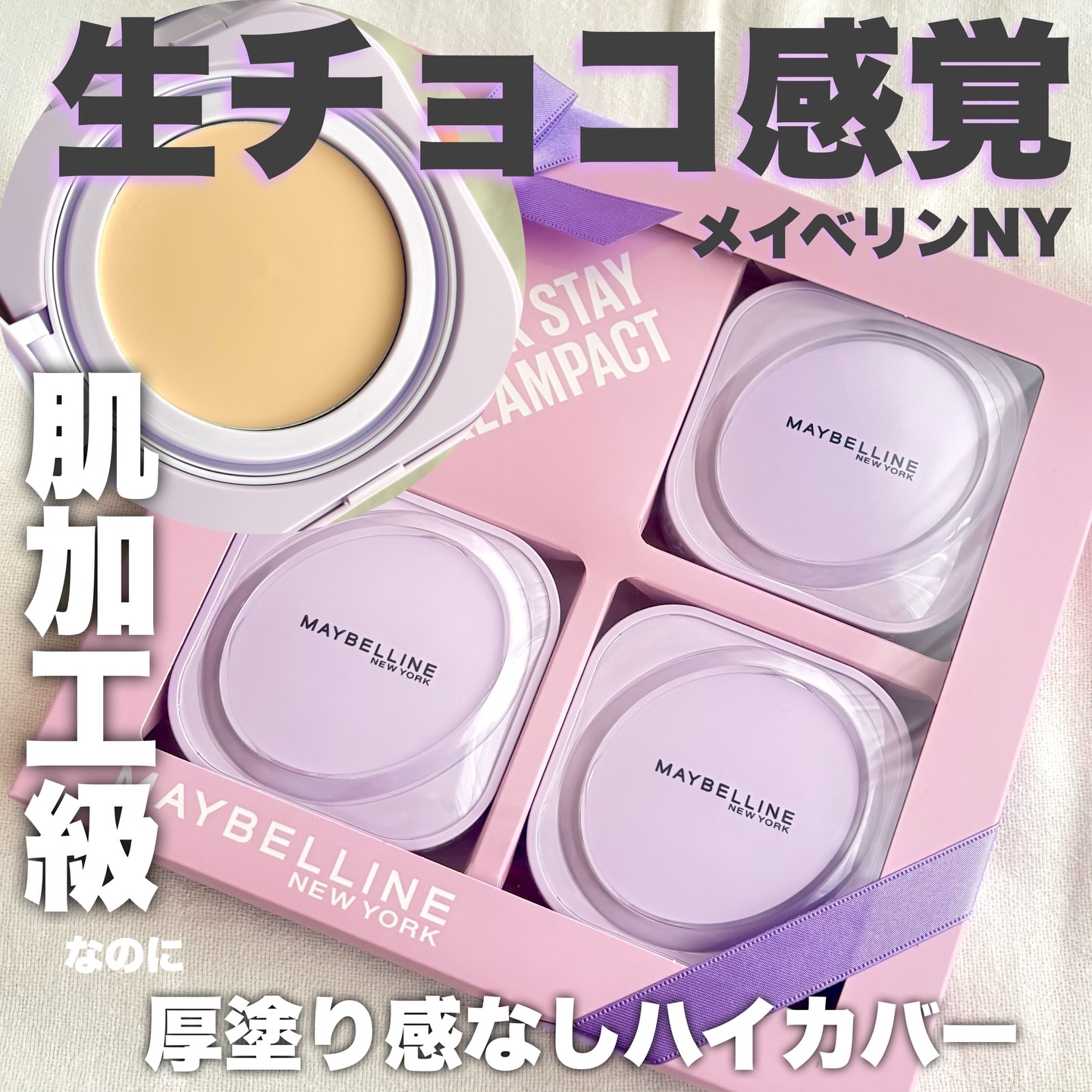 ◈◈メイベリンSPステイクリームパクトファンデーション◈◈メイベリンのSPステイクリームパクトファンデーションは生チョコみたいなバームがとろけて肌に密着してくれます🍫指先の体温だけで柔らかくなるよ❣️今回使用したカラーは3色💜自然な明るさで透...