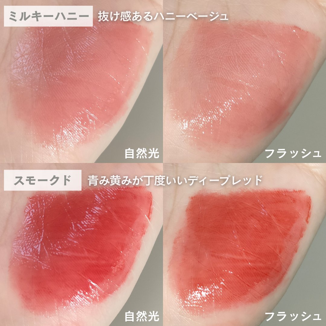 - <アップルシャーベット> 水、リンゴ酸ジイソステアリル、ビスジグリセリルポリアシルアジペート-2、ダイマージリノール酸ダイマージリノレイルビス(ベヘニル/イソステアリル/フィトステリル)、水添ポリイソブテン、ジグリセリン、ジフェニルジメチコン、セチルPEG/PPG-10/1ジメチコン、トリメチルシロキシフェニルジメチコン、ポリソルベート60、ペンチレングリコール、イソステアリン酸ソルビタン、イソステアリン酸ポリグリセリル-4、フェノキシエタノール、(アクリル酸ヒドロキシエチル/アクリロイルジメチルタウリンNa)コポリマー、セテアレス-20、スクワラン、香料、ジラウラミドグルタミドリシンNa、エチルヘキシルグリセリン、エチレンジアミンジコハク酸3Na、黄5、赤227、赤104(1)、黄4 <オッドコーラル> 水、リンゴ酸ジイソステアリル、ダイマージリノール酸ダイマージリノレイルビス(ベヘニル/イソステアリル/フィトステリル)、ビスジグリセリルポリアシルアジペート-2、水添ポリイソブテン、ジフェニルジメチコン、ジグリセリン、セチルPEG/PPG-10/1ジメチコン、トリメチルシロキシフェニルジメチコン、ポリソルベート60、ペンチレングリコール、イソステアリン酸ソルビタン、イソステアリン酸ポリグリセリル-4、フェノキシエタノール、セテアレス-20、(アクリル酸ヒドロキシエチル/アクリロイルジメチルタウリンNa)コポリマー、スクワラン、香料、ジラウラミドグルタミドリシンNa、エチルヘキシルグリセリン、エチレンジアミンジコハク酸3Na、水酸化Al、ポリアクリル酸アンモニウム、BG、酸化チタン、黄5、赤104(1)、黄4、赤227、青1 <チリンチリン> 水、リンゴ酸ジイソステアリル、ダイマージリノール酸ダイマージリノレイルビス(ベヘニル/イソステアリル/フィトステリル)、ビスジグリセリルポリアシルアジペート-2、水添ポリイソブテン、ジグリセリン、ジフェニルジメチコン、セチルPEG/PPG-10/1ジメチコン、トリメチルシロキシフェニルジメチコン、ポリソルベート60、ペンチレングリコール、イソステアリン酸ソルビタン、イソステアリン酸ポリグリセリル-4、フェノキシエタノール、セテアレス-20、(アクリル酸ヒドロキシエチル/アクリロイルジメチルタウリンNa)コポリマー、スクワラン、香料、ジラウラミドグルタミドリシンNa、エチルヘキシルグリセリン、エチレンジアミンジコハク酸3Na、水酸化Al、ポリアクリル酸アンモニウム、BG、酸化チタン、黄5、赤227、黄4、赤104(1)、青1 <ハッシュドチェリー> 水、リンゴ酸ジイソステアリル、ビスジグリセリルポリアシルアジペート-2、ダイマージリノール酸ダイマージリノレイルビス(ベヘニル/イソステアリル/フィトステリル)、水添ポリイソブテン、ジグリセリン、ジフェニルジメチコン、トリメチルシロキシフェニルジメチコン、セチルPEG/PPG-10/1ジメチコン、ポリソルベート60、ペンチレングリコール、イソステアリン酸ソルビタン、イソステアリン酸ポリグリセリル-4、フェノキシエタノール、セテアレス-20、(アクリル酸ヒドロキシエチル/アクリロイルジメチルタウリンNa)コポリマー、スクワラン、香料、ジラウラミドグルタミドリシンNa、エチルヘキシルグリセリン、エチレンジアミンジコハク酸3Na、赤227、黄5、黄4、赤104(1)、青1 <ローザ> 水、リンゴ酸ジイソステアリル、ダイマージリノール酸ダイマージリノレイルビス(ベヘニル/イソステアリル/フィトステリル)、ビスジグリセリルポリアシルアジペート-2、水添ポリイソブテン、ジグリセリン、ジフェニルジメチコン、トリメチルシロキシフェニルジメチコン、セチルPEG/PPG-10/1ジメチコン、ポリソルベート60、ペンチレングリコール、イソステアリン酸ソルビタン、イソステアリン酸ポリグリセリル-4、フェノキシエタノール、セテアレス-20、(アクリル酸ヒドロキシエチル/アクリロイルジメチルタウリンNa)コポリマー、スクワラン、香料、ジラウラミドグルタミドリシンNa、エチルヘキシルグリセリン、エチレンジアミンジコハク酸3Na、酸化チタン、赤227、赤104(1)、黄4、黄5、水酸化Al、ポリアクリル酸アンモニウム、BG、青1 <ピンキーローキー> 水、リンゴ酸ジイソステアリル、ダイマージリノール酸ダイマージリノレイルビス(ベヘニル/イソステアリル/フィトステリル)、ビスジグリセリルポリアシルアジペート-2、水添ポリイソブテン、ジグリセリン、ジフェニルジメチコン、トリメチルシロキシフェニルジメチコン、セチルPEG/PPG-10/1ジメチコン、ポリソルベート60、ペンチレングリコール、イソステアリン酸ソルビタン、イソステアリン酸ポリグリセリル-4、フェノキシエタノール、セテアレス-20、(アクリル酸ヒドロキシエチル/アクリロイルジメチルタウリンNa)コポリマー、スクワラン、香料、ジラウラミドグルタミドリシンNa、エチルヘキシルグリセリン、エチレンジアミンジコハク酸3Na、酸化チタン、黄5、赤227、黄4、赤104(1)、青1、水酸化Al、ポリアクリル <アンダーモーブ> 水、リンゴ酸ジイソステア