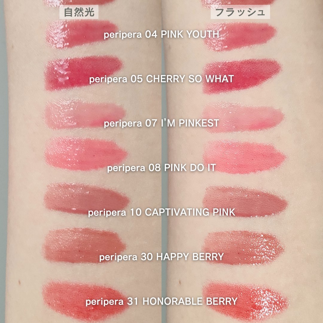 periperaインクムードグロイティント30番に続いてこちらも使用頻度がかなり高い1本です🍓31番は、しっかり塗ると“名誉レッドいちご”らしい赤リップ🍓薄く塗ると自然に血色感がUP♥️その日の気分やメイクに合わせて濃さを調整しやすい(´・ω...