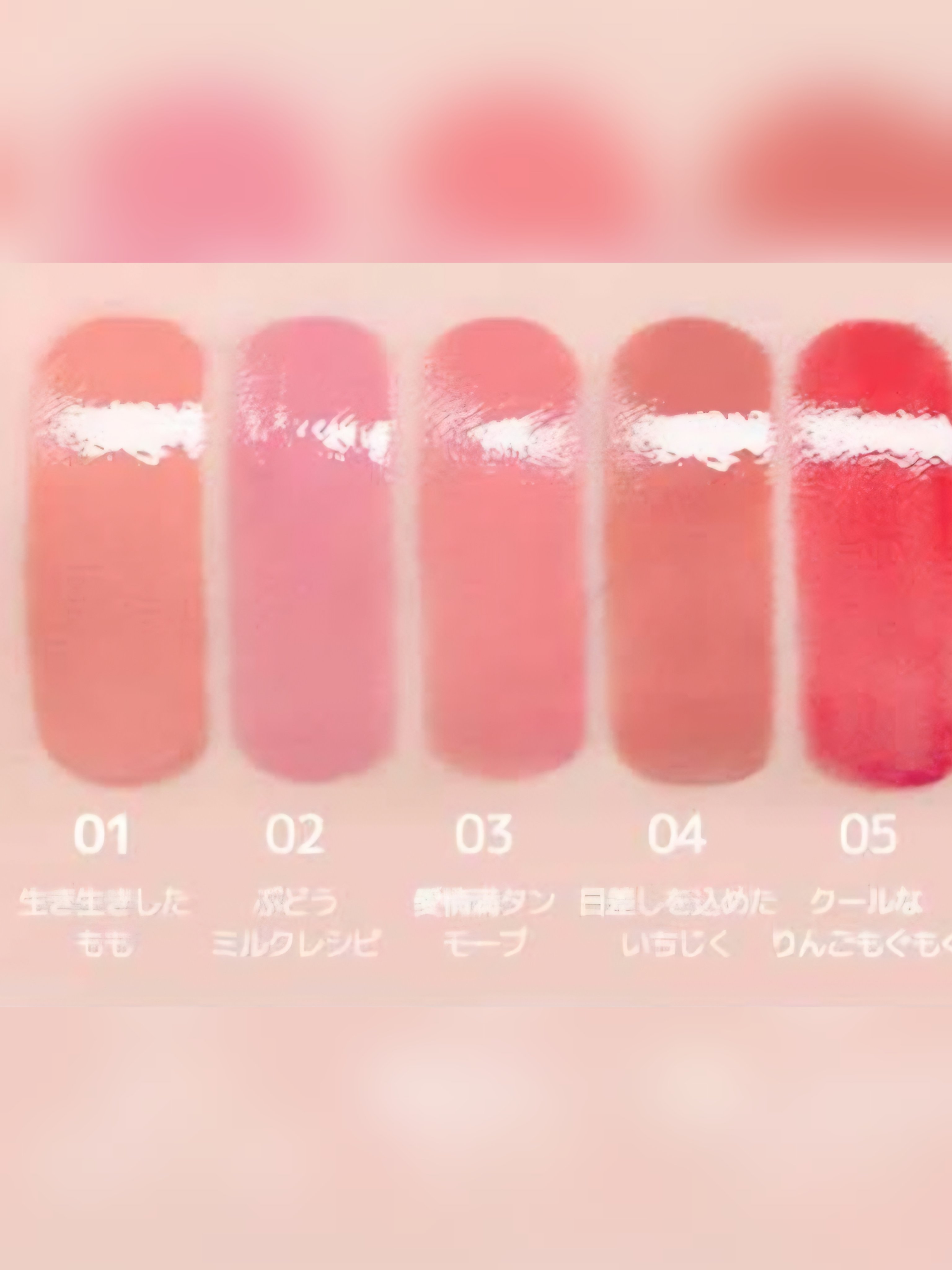 - <01 ライトピーチ> 水添ポリイソブテン、水添ポリ(C6-14オレフィン)、マイカ、リンゴ酸ジイソステアリル、オクチルドデカノール、トリメチルシロキシケイ酸、イソドデカン、水添(スチレン/イソプレン)コポリマー、シリカ、イソステアリン酸ソルビタン、セスキオレイン酸ソルビタン、ジステアルジモニウムヘクトライト、フェノキシエタノール、炭酸プロピレン、トリエトキシカプリリルシラン、水酸化Al、香料、ポリヒドロキシステアリン酸、テトラ(ジ-t-ブチルヒドロキシヒドロケイヒ酸)ペンタエリスリチル、トコフェロール、酸化チタン、酸化鉄、黄4、赤104(1)、黄5 <02 ミルキーラベンダー> 水添ポリイソブテン、水添ポリ(C6-14オレフィン)、マイカ、リンゴ酸ジイソステアリル、オクチルドデカノール、トリメチルシロキシケイ酸、イソドデカン、水添(スチレン/イソプレン)コポリマー、シリカ、イソステアリン酸ソルビタン、セスキオレイン酸ソルビタン、ジステアルジモニウムヘクトライト、フェノキシエタノール、炭酸プロピレン、トリエトキシカプリリルシラン、水酸化Al、香料、ポリヒドロキシステアリン酸、テトラ(ジ-t-ブチルヒドロキシヒドロケイヒ酸)ペンタエリスリチル、トコフェロール、酸化チタン、赤202、酸化鉄、青1 <03 フレンドシップモーブ> 水添ポリイソブテン、水添ポリ(C6-14オレフィン)、マイカ、リンゴ酸ジイソステアリル、オクチルドデカノール、トリメチルシロキシケイ酸、イソドデカン、水添(スチレン/イソプレン)コポリマー、シリカ、イソステアリン酸ソルビタン、セスキオレイン酸ソルビタン、ジステアルジモニウムヘクトライト、フェノキシエタノール、炭酸プロピレン、トリエトキシカプリリルシラン、水酸化Al、香料、ポリヒドロキシステアリン酸、テトラ(ジ-t-ブチルヒドロキシヒドロケイヒ酸)ペンタエリスリチル、トコフェロール、酸化チタン、酸化鉄、赤202 <04 サンシャインフィグ> 水添ポリイソブテン、水添ポリ(C6-14オレフィン)、マイカ、リンゴ酸ジイソステアリル、オクチルドデカノール、トリメチルシロキシケイ酸、イソドデカン、水添(スチレン/イソプレン)コポリマー、シリカ、イソステアリン酸ソルビタン、セスキオレイン酸ソルビタン、ジステアルジモニウムヘクトライト、フェノキシエタノール、炭酸プロピレン、トリエトキシカプリリルシラン、水酸化Al、香料、ポリヒドロキシステアリン酸、テトラ(ジ-t-ブチルヒドロキシヒドロケイヒ酸)ペンタエリスリチル、トコフェロール、酸化チタン、酸化鉄、赤202 <05 クールアップル> 水添ポリイソブテン、水添ポリ(C6-14オレフィン)、マイカ、リンゴ酸ジイソステアリル、オクチルドデカノール、トリメチルシロキシケイ酸、イソドデカン、水添(スチレン/イソプレン)コポリマー、シリカ、イソステアリン酸ソルビタン、セスキオレイン酸ソルビタン、ジステアルジモニウムヘクトライト、フェノキシエタノール、炭酸プロピレン、香料、トリエトキシカプリリルシラン、水酸化Al、ポリヒドロキシステアリン酸、テトラ(ジ-t-ブチルヒドロキシヒドロケイヒ酸)ペンタエリスリチル、トコフェロール、酸化チタン、酸化鉄、赤104(1)、赤202、黄4 <09 ミルク仕立てのもも(限定)> 水添ポリイソブテン、水添ポリ(C6-14オレフィン)、マイカ、リンゴ酸ジイソステアリル、オクチルドデカノール、トリメチルシロキシケイ酸、イソドデカン、水添(スチレン/イソプレン)コポリマー、シリカ、イソステアリン酸ソルビタン、セスキオレイン酸ソルビタン、ジステアルジモニウムヘクトライト、フェノキシエタノール、炭酸プロピレン、香料、テトラ(ジ-t-ブチルヒドロキシヒドロケイヒ酸)ペンタエリスリチル、トコフェロール、酸化チタン、酸化鉄、赤202、黄5、黄4 <10 ぶどうミルクショット追加(限定)> 水添ポリイソブテン、水添ポリ(C6-14オレフィン)、マイカ、リンゴ酸ジイソステアリル、オクチルドデカノール、トリメチルシロキシケイ酸、イソドデカン、水添(スチレン/イソプレン)コポリマー、シリカ、イソステアリン酸ソルビタン、セスキオレイン酸ソルビタン、ジステアルジモニウムヘクトライト、フェノキシエタノール、炭酸プロピレン、香料、テトラ(ジ-t-ブチルヒドロキシヒドロケイヒ酸)ペンタエリスリチル、トコフェロール、酸化チタン、黄4、赤104(1)、赤202、青1