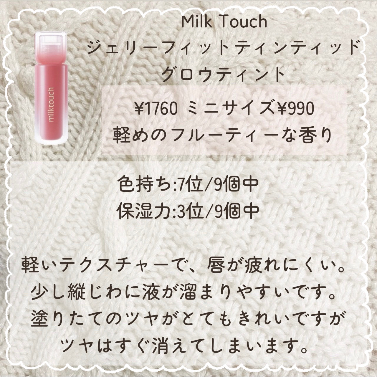 Milk Touch ジェリーフィットティンティッドグロウティント | 1,760円 |