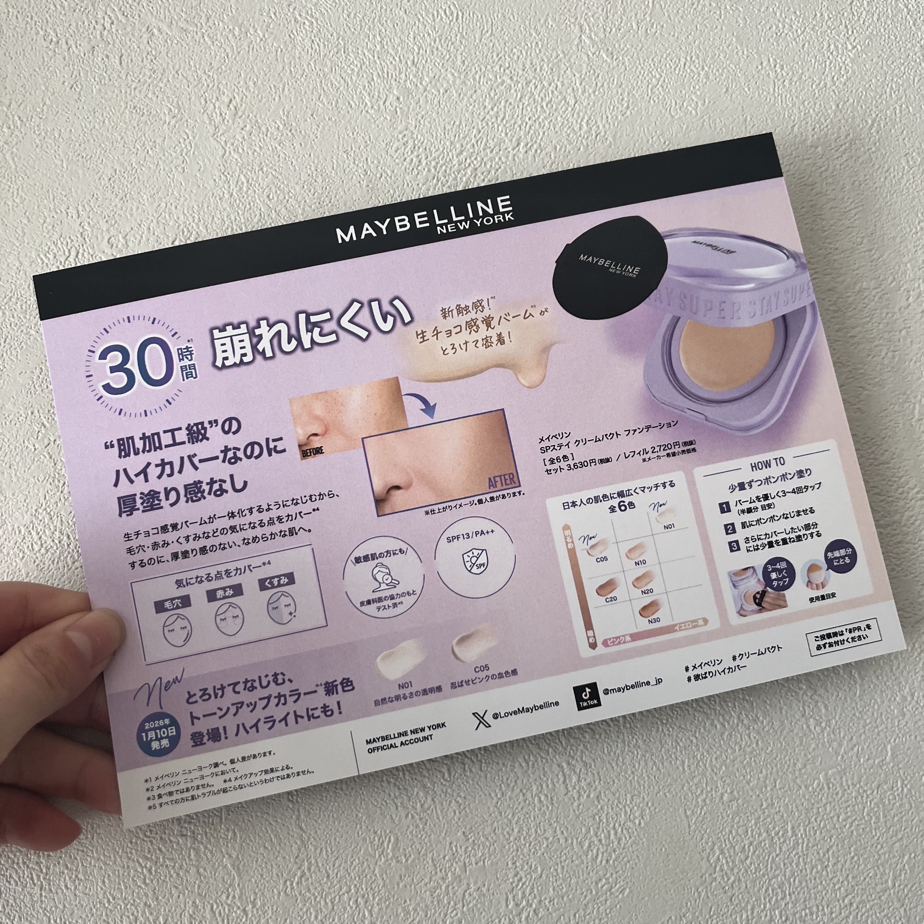 - 30時間*。 スキがないのに、 厚塗り感ゼロへ 肌にとけこむような、欲ばりハイカバー *メイベリン ニューヨーク調べ。個人差があります。 SPF13/PA++ 2025/3/4 PLAZA・LOFT・Amazon 先行発売 2025/3/22 全国発売
