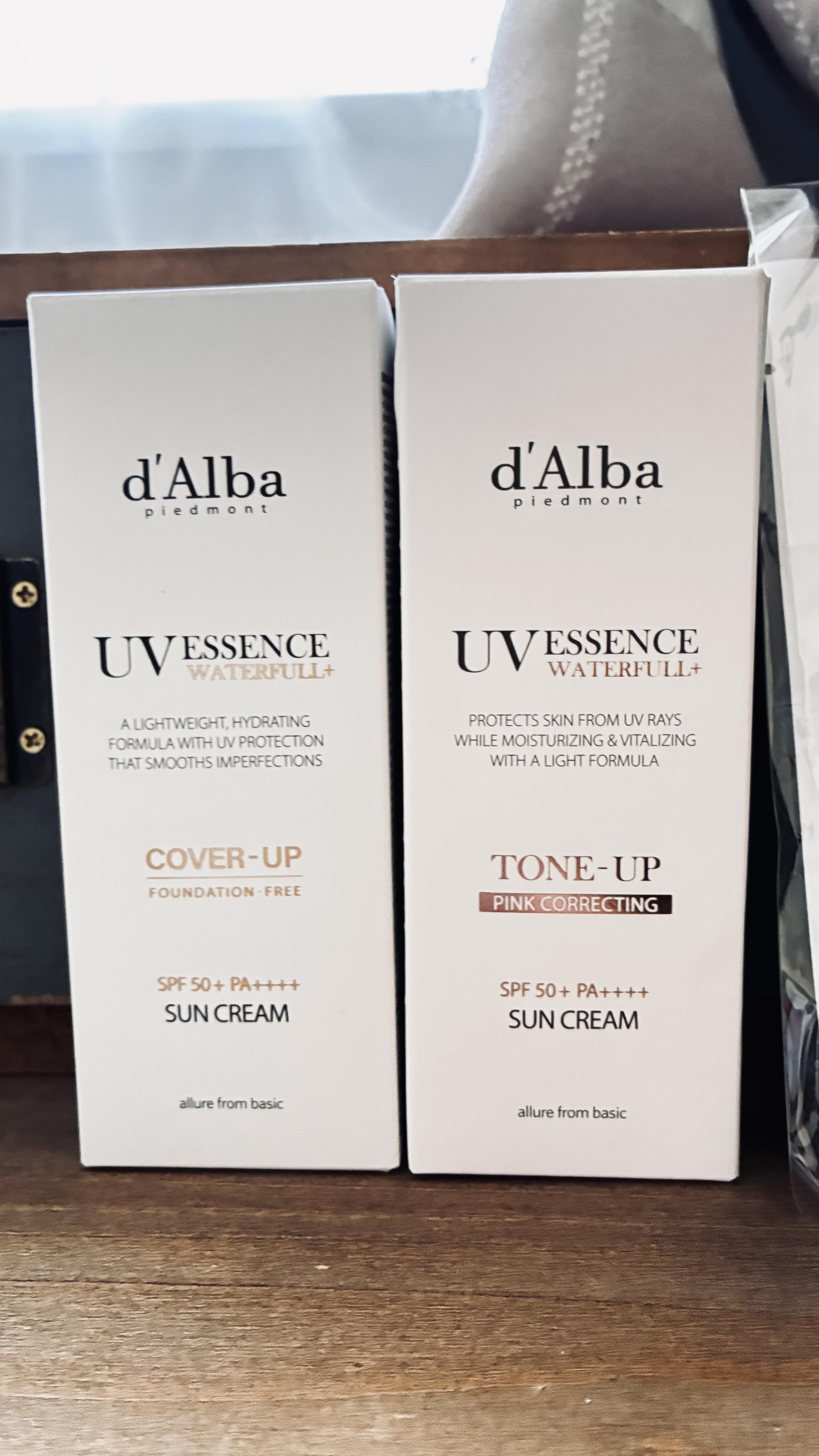 ダルバ ウォータフル トーンアップ サンクリーム パープルはかなりしっかりめにトーンアップしてくれます◎ カラーはブルベ向きの色です! ダルバ ウォータフル トーンアップ サンクリーム ピンクはイエベ、ブルベどちらもOKなので何を買うか悩んでいる方にはこれがおすすめ! ダルバ ウォータフル エッセンス サンクリームは下地としてではなく日焼け止めとして使用します。無色なので首などの全身塗れます!