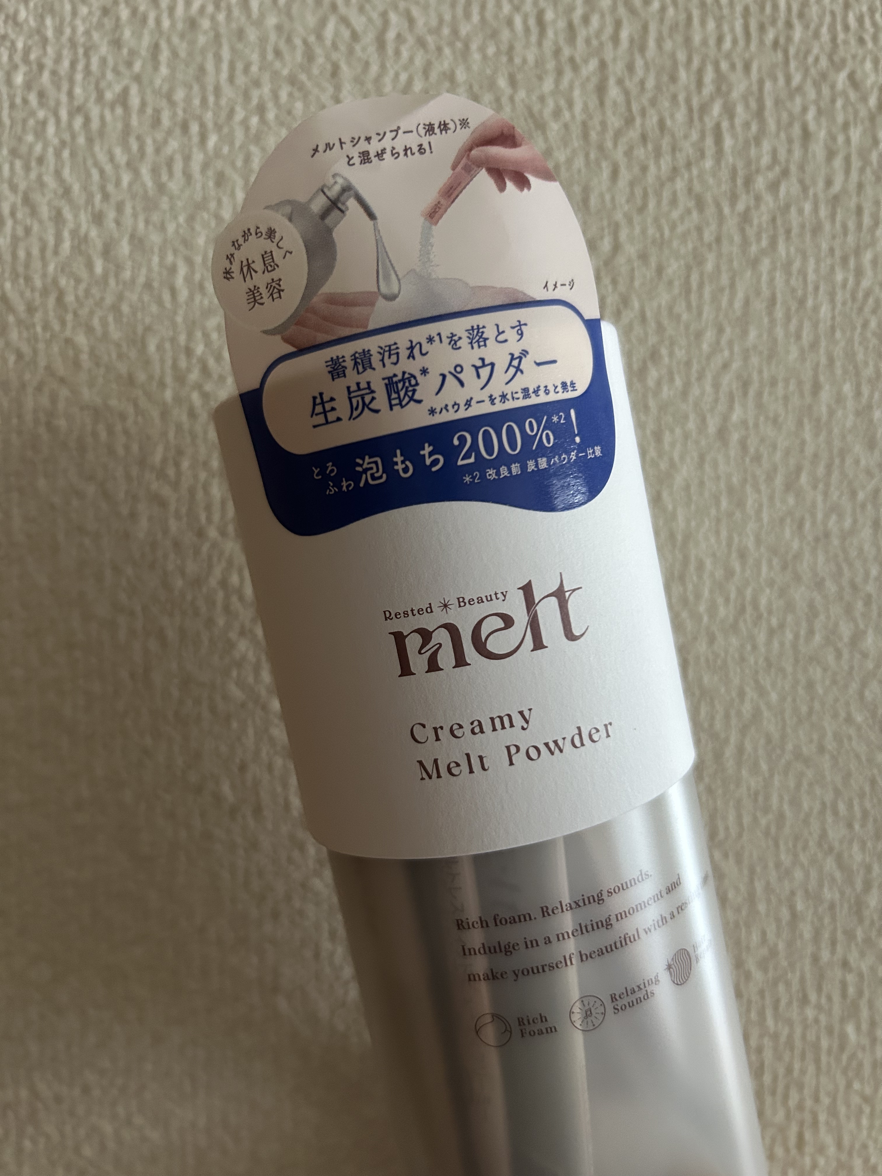 頑張りすぎない、休息美容を提案するmeltのヘアケアメルトモイストシャンプー&トリートメントクリーミーメルトパウダーLIPSのプレゼントでいただき、お試ししてみました✨新しくなった炭酸パウダーは水を加えるとシュワシュワと発泡し始めてシャンプー...