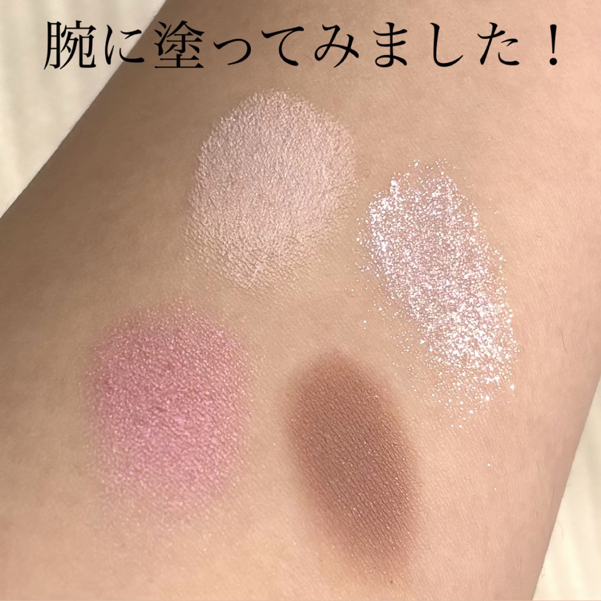rom&ndベターザンパレット03の薄い色をとってまぶたに乗せます キャンメイクパーフェクトスタイリストアイズNo.14の右上の色をベースに重ねます rom&ndベターザンパレット03の大粒のグリッターラメを涙袋に乗せます rom&ndベターザンパレット03の細かいラメを黒目の上に乗せたら完成です!