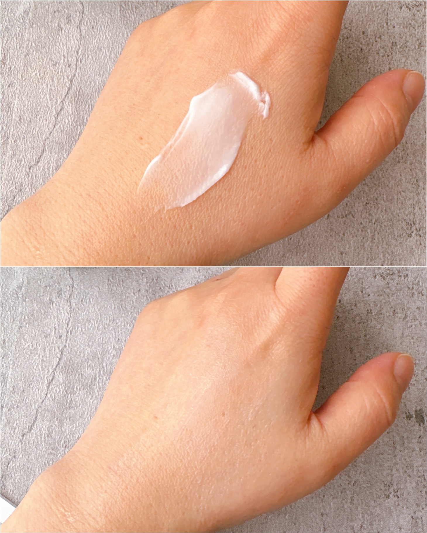 乳液のようにみずみずしいテクスチャーでワンプッシュで顔全体に伸ばせます。 スキンケアみたいにスルスル伸びて ヨレたりせずに均一につけられるし、 次に使うパウダーやファンデの乗りもアップ! ミントカラーが赤みを抑えてくれるから 肌荒れしてちょっと赤みを帯びたところとか ニキビ跡とかもキレイにカバーできる。 ラベンダーと比べると、 ミントの方がトーンアップ効果が高いかな。 ほどよくカバー力があるから すっぴん風メイクにもいいし、 しっかりメイクの時にも どちらも使える万能トーンアップエッセンス。